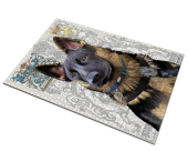 1000 piece puzzle featuring the DSU German Shepherd artwork by Boris The 1000 piece puzzle comes in a white satin cloth bag. Please allow 4-5 days delivery.