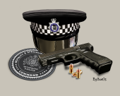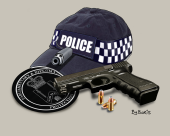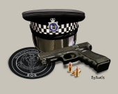 SO16 Patch, Met Soft Blue Cap, Glock and Ammo Mounted Print 20ins x 16ins. The original artwork was entirely sketched on an iPad Pro 12.9 using the Procreate App. Each print comes with a certificate of authenticity with it's unique print run number and each print is signed ...