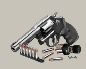 Smith & Wesson Model 10 Rubber Grip Shells and Jet Loader Mounted Print 20ins x 16ins The original artwork was entirely sketched on an iPad Pro 12.9 using the Procreate App. Each print comes with a certificate of authenticity with it's unique print run number and each print...