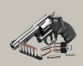 Smith & Wesson Model 10 Rubber Grip Shells and Speed Loader Mounted Print 20ins x 16ins The original artwork was entirely sketched on an iPad Pro 12.9 using the Procreate App. Each print comes with a certificate of authenticity with it's unique print run number and each pri...