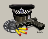 RaSP Patch, Met Soft Blue Cap, Glock and Ammo Mounted Print 20ins x 16ins. The original artwork was entirely sketched on an iPad Pro 12.9 using the Procreate App. Each print comes with a certificate of authenticity with it's unique print run number and each print is signed ...