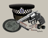 71 Met SO16 Patch Met Flat Cap Smith & Wesson 10 Rubber Grip and Ammo