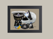 Traffic Mounted Print 20ins x 16ins. This is a montage of a Traffic Inspector Montage featuring A White Met Flat Cap and a Inspectors Open Face Helmet with a black peak. The original artwork was entirely sketched on an iPad Pro 12.9 using the Procreate App. The...