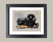 Shiny Boots Framed Print 12ins x 10ins. The original artwork was entirely sketched on an iPad Pro 12.9 using the Procreate App. This is a memory of my shiny bulled boots, Custodian helmet, truncheon and whistle. The artwork is printed on high quality matt lust...