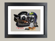 Traffic Framed Print 20ins x 16ins. This is a montage of a Traffic Officer featuring A White Met Flat Cap and a Rising Chin Helmet. The original artwork was entirely sketched on an iPad Pro 12.9 using the Procreate App. The artwork is printed on high quality ma...