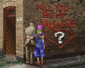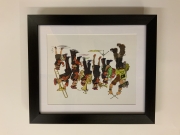 Pinnie Hinnies Valentine Mounted and Framed Print 20ins x 16ins. I originally sketched this as a black and white illustration for an article that appeared in the Northumbrian magazine. The idea for the characters stemmed from my memories of my father who played the Cornet in the Pegswood Brass...