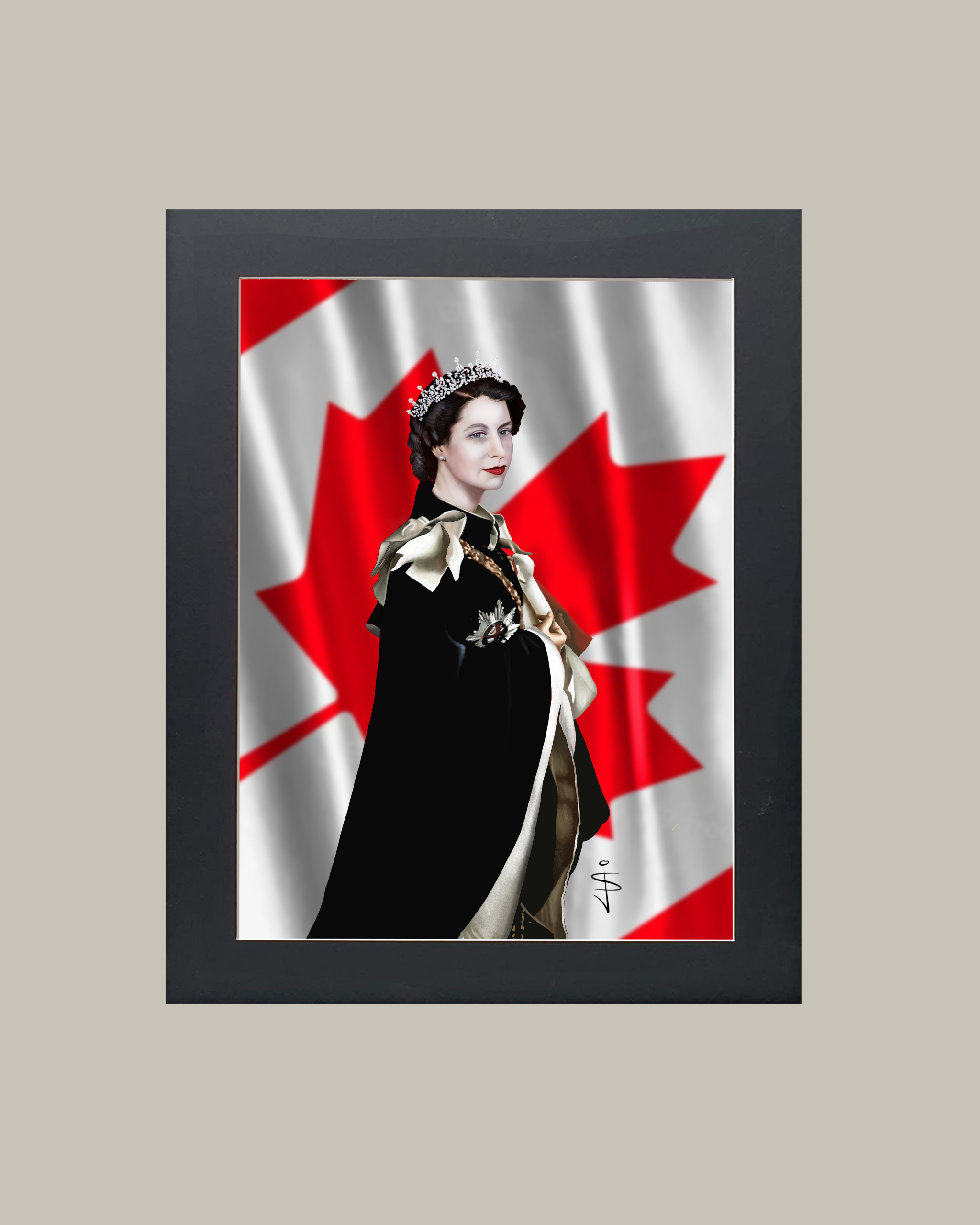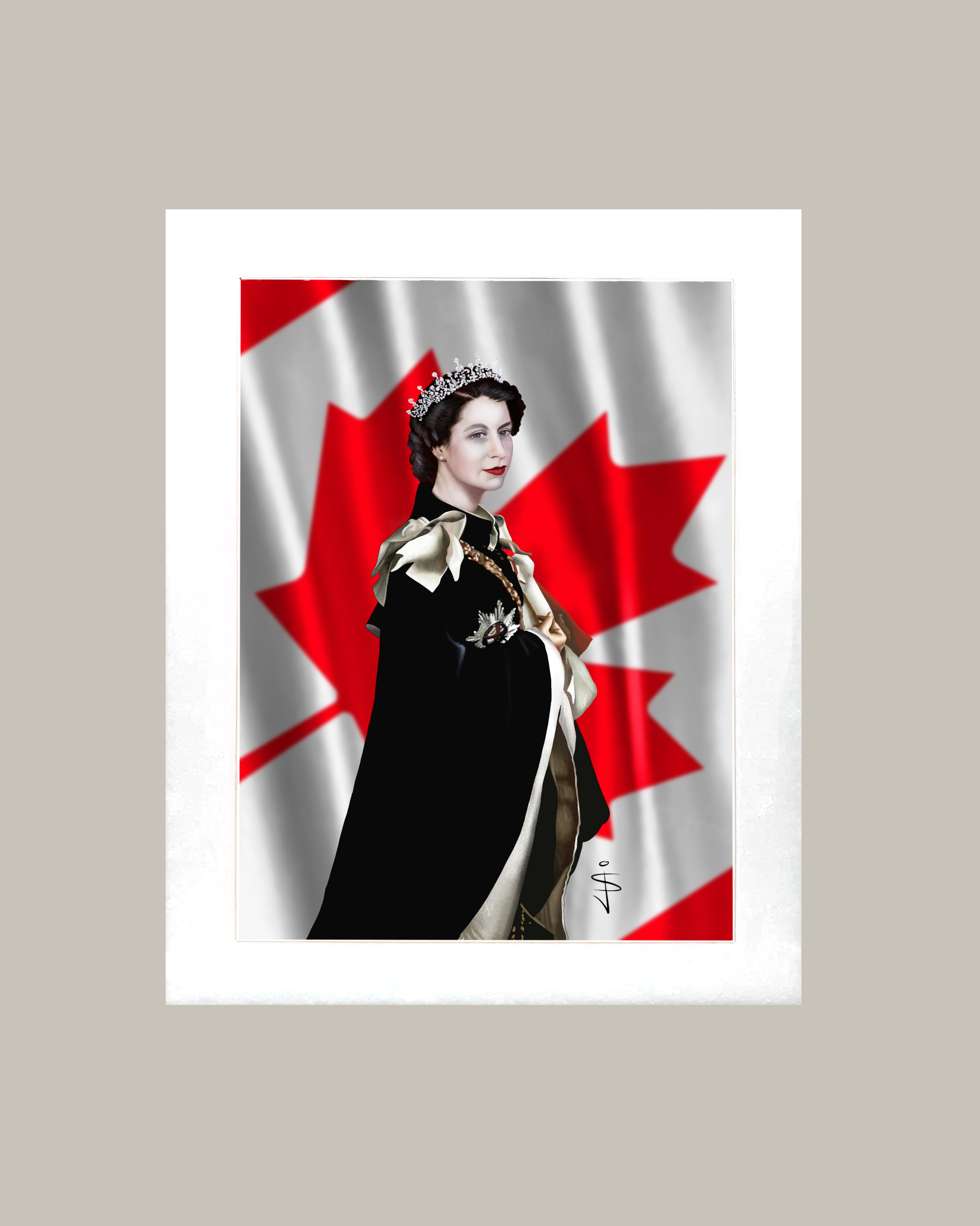 Elizabeth II Canada Flag Mounted Print 20ins x 16ins.