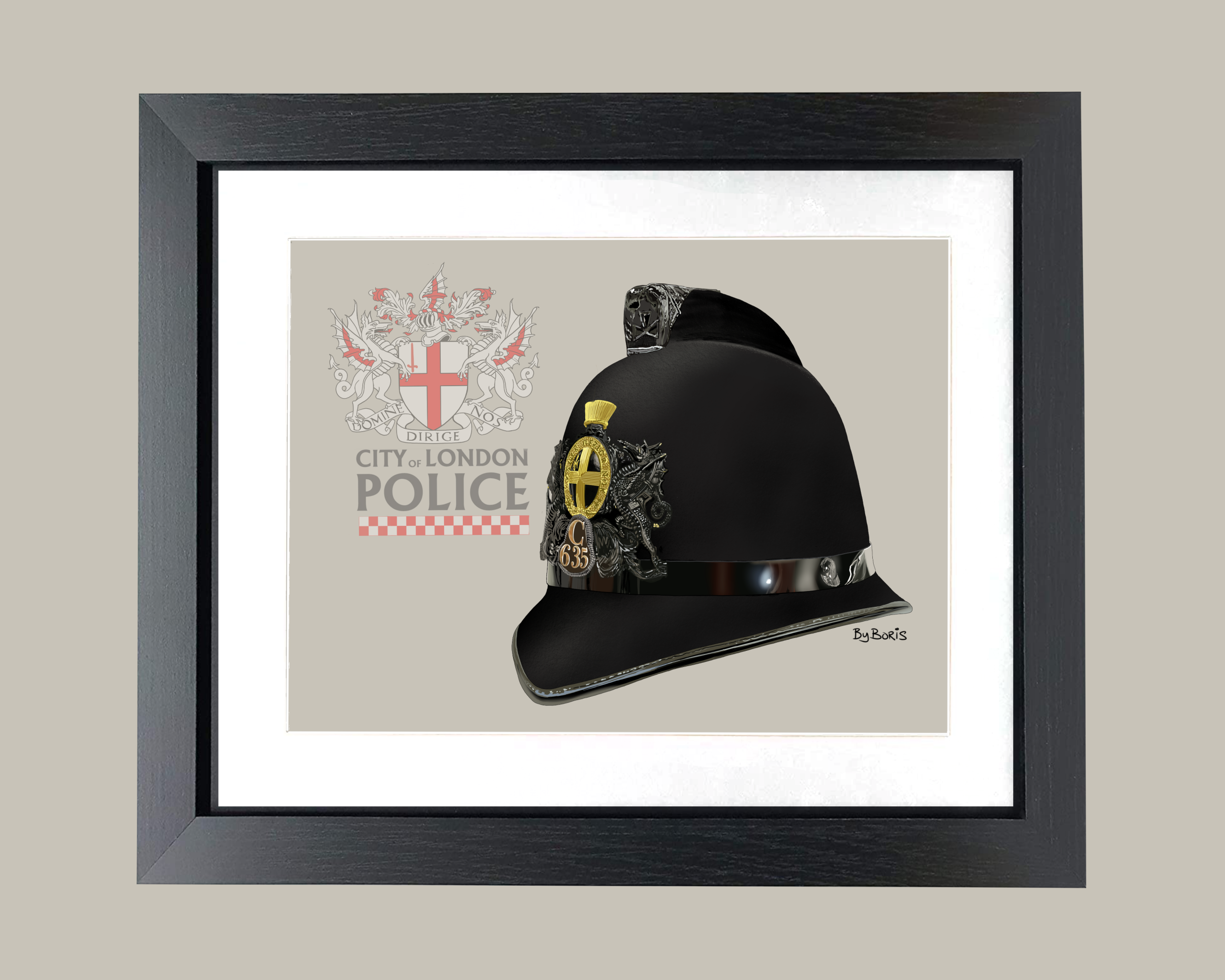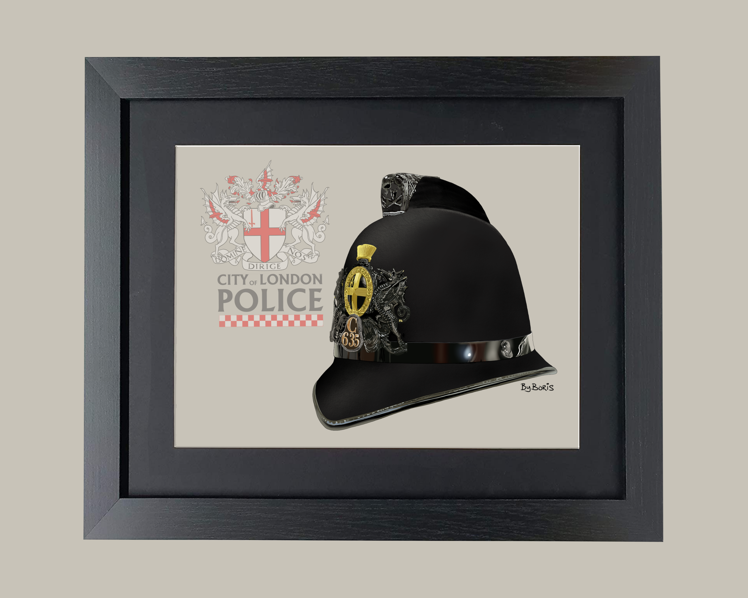 Personalised City of London Helmet Framed Print 12ins x 10ins.