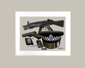Well I finally finished my latest By Boris police unit themed art, this is my very own special take on that very staunch outfit I knew as “Door, Parks and Gates”, or “Disco’s Parties and Gigs” or who you may know as the DPG. In this montage, I’ve included the H & K MP5, Glock 17, Met Flat Cap, Warrant Card, Epaulettes and pen and pencil.