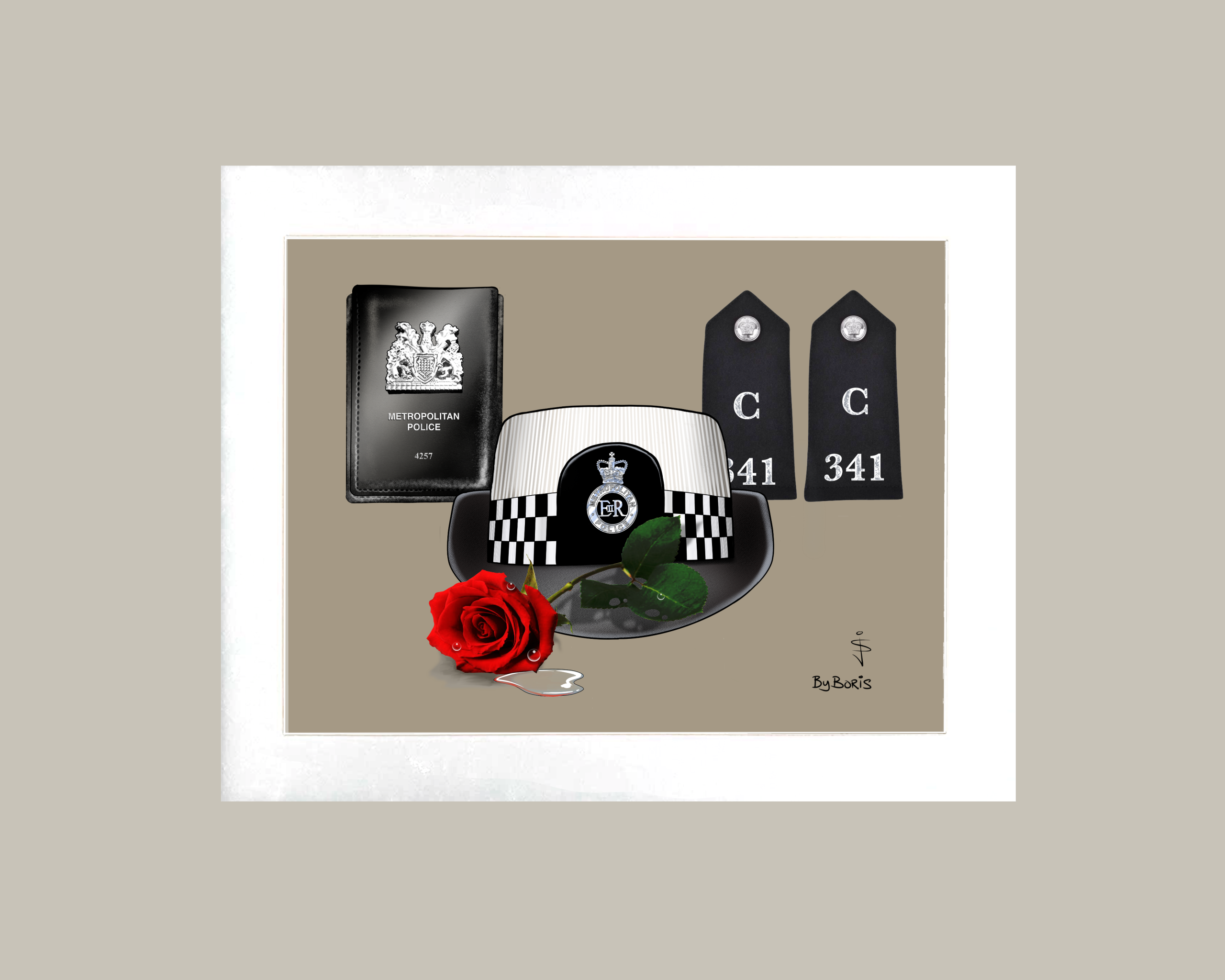 This is my digital painted tribute sketch of the “Yvonne Fletcher Weeping Rose Tribute” which I painted to honour the memory of a fellow officer tragically cut down and killed whilst on duty. The warrant card bears her unique warrant number and the two shoulder epaulettes have her Division and number 341.