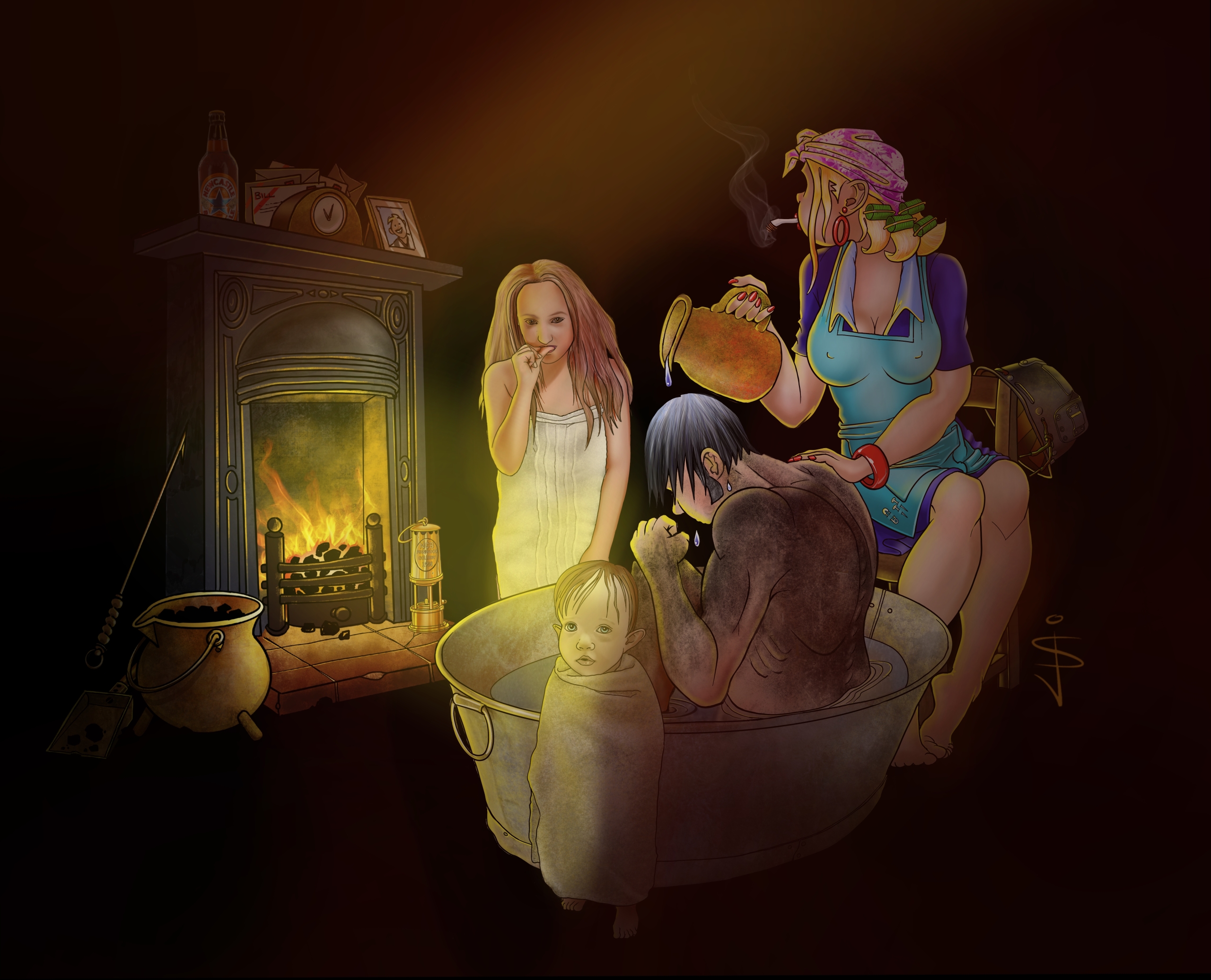 The original artwork was entirely sketched on an iPad Pro 12.9 using the Procreate App, and is one of a series I have created of Pinnie Hinnies, which tries and recaptures my memories of growing up as a child in the small mining village of Pegswood in Northumberland. The term “Hinnies” is the local name for woman in the North East, and were know to wear a variety of pinnies or aprons, hence the name of the series Pinnie Hinnies.