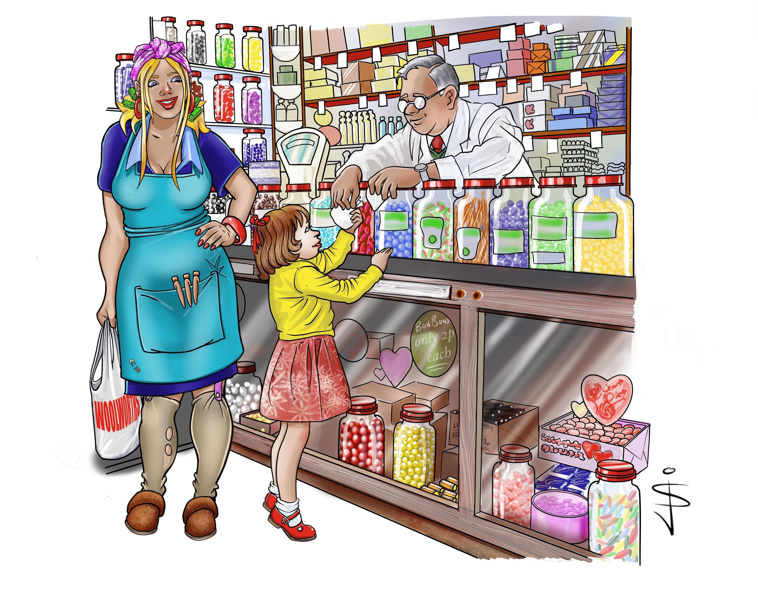 Pinnie Hinnies Sweet Shop mount print 12ins x 10ins