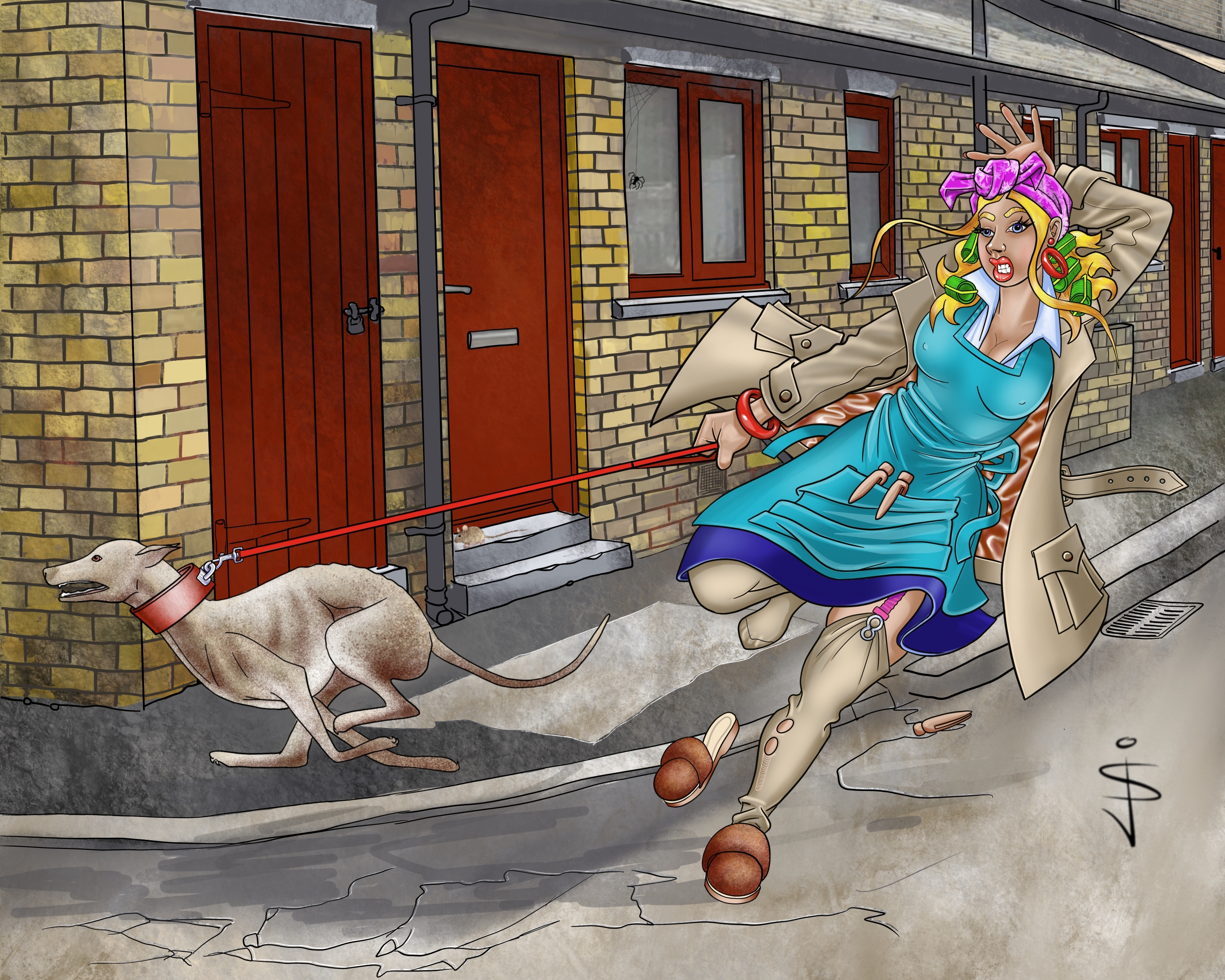 The original artwork was entirely sketched on an iPad Pro 12.9 using the Procreate App, and is one of a series I have created of Pinnie Hinnies, which tries and recaptures my memories of growing up as a child in the small mining village of Pegswood in Northumberland. The term “Hinnies” is the local name for woman in the North East, and were know to wear a variety of pinnies or aprons, hence the name of the series Pinnie Hinnies.