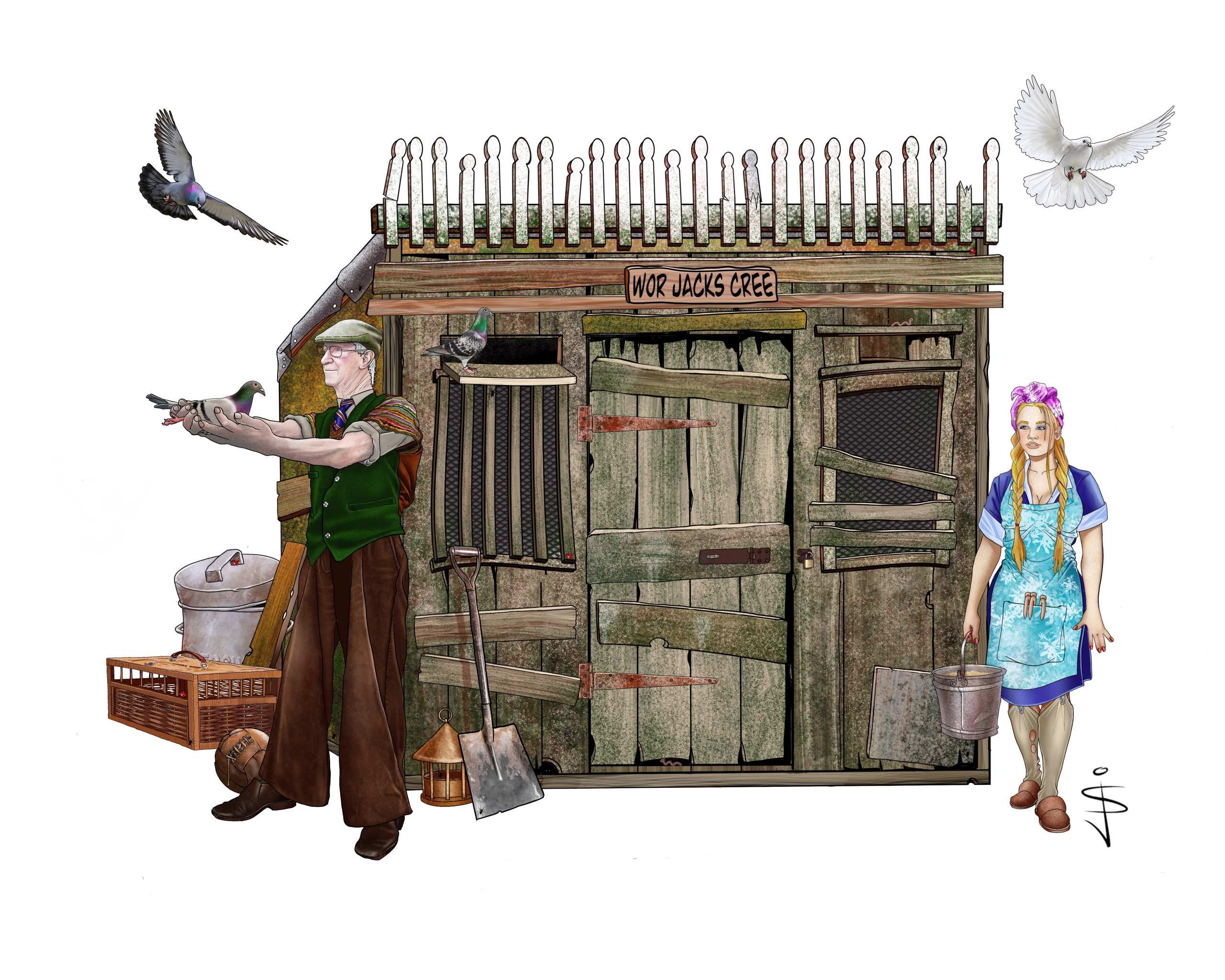 The original artwork was entirely sketched on an iPad Pro 12.9 using the Procreate App, and is one of a series I have created of Pinnie Hinnies, which tries and recaptures my memories of growing up as a child in the small mining village of Pegswood in Northumberland. The term “Hinnies” is the local name for woman in the North East, and were know to wear a variety of pinnies or aprons, hence the name of the series Pinnie Hinnies.