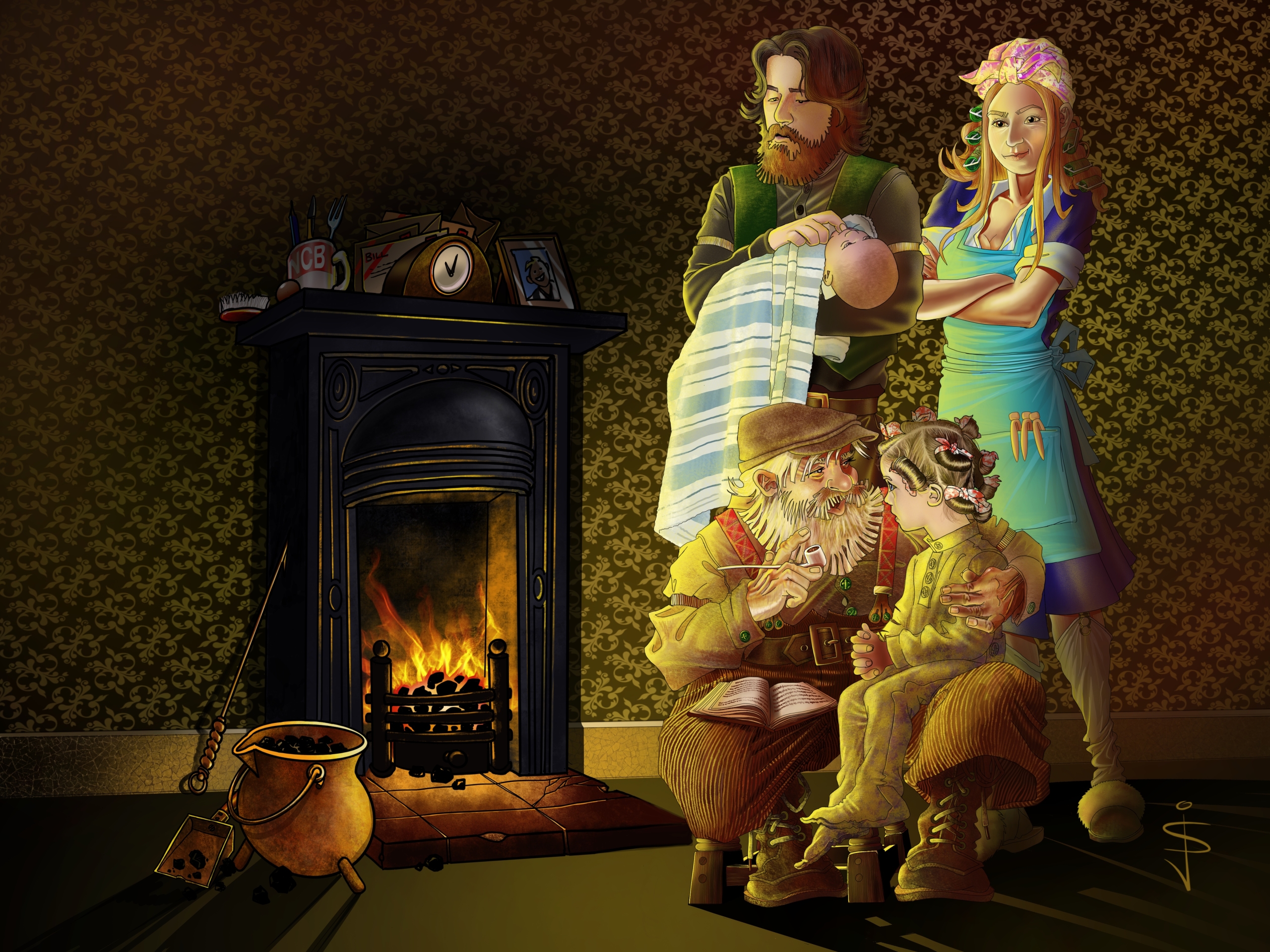 The original artwork was entirely sketched on an iPad Pro 12.9 using the Procreate App, and is one of a series I have created of Pinnie Hinnies, which tries and recaptures my memories of growing up as a child in the small mining village of Pegswood in Northumberland. The term “Hinnies” is the local name for woman in the North East, and were know to wear a variety of pinnies or aprons, hence the name of the series Pinnie Hinnies.