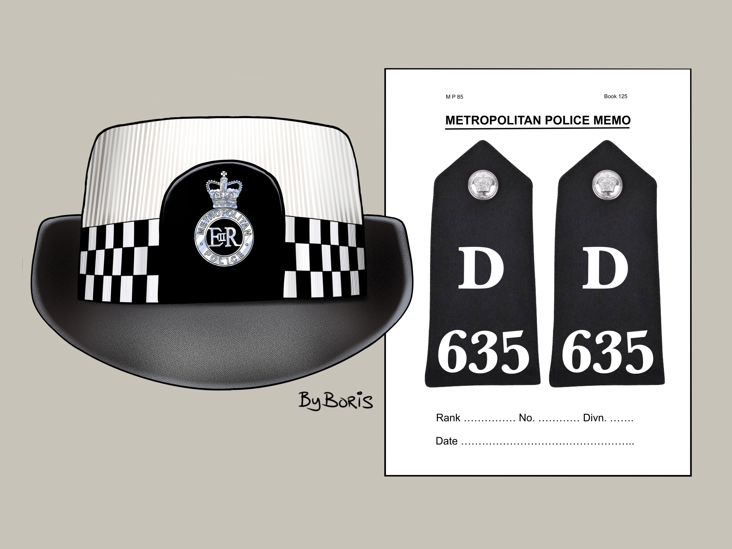 Personalised Met White Pillbox and Shoulder Numbers Mounted Print 12ins x 10ins.