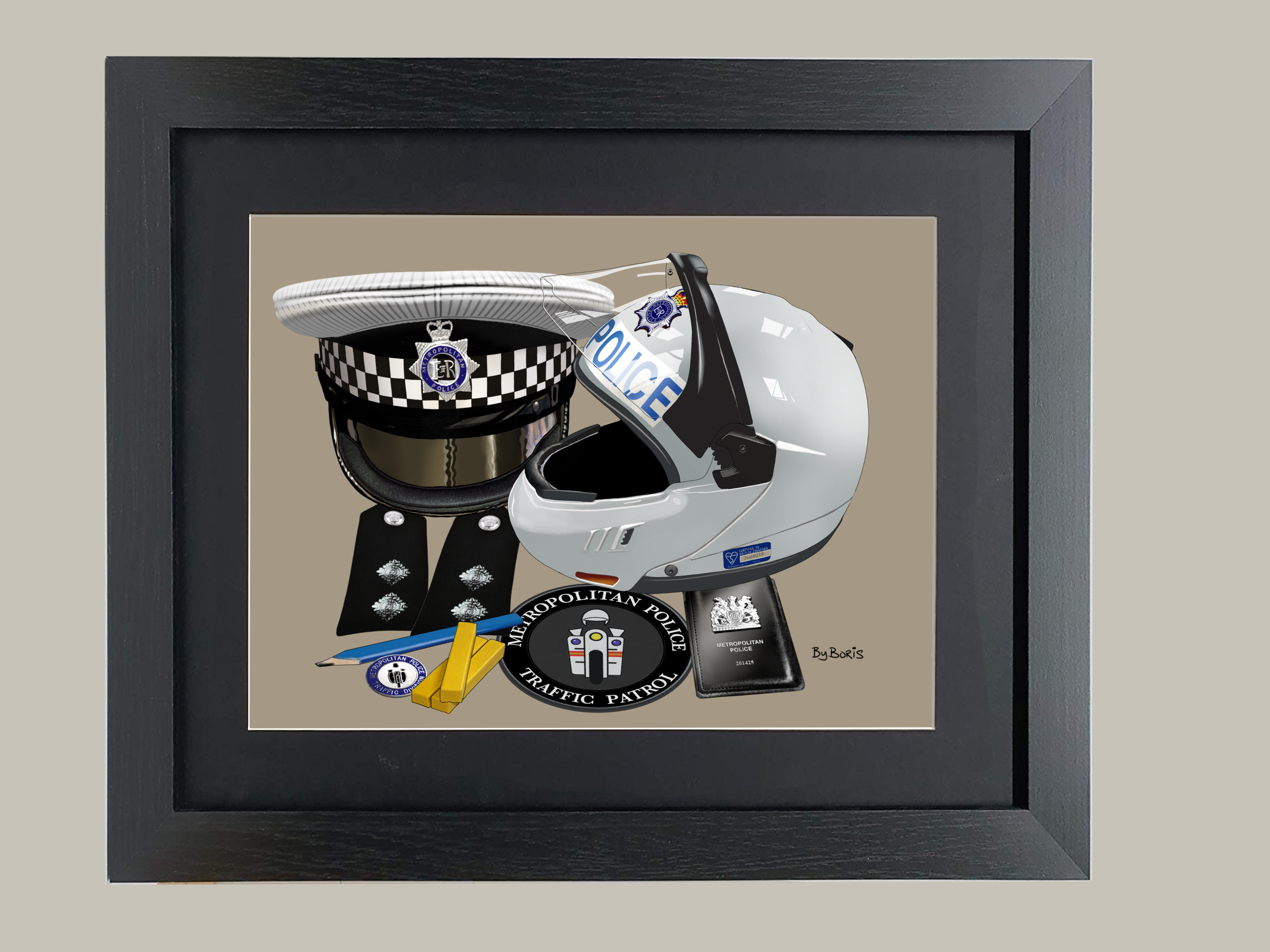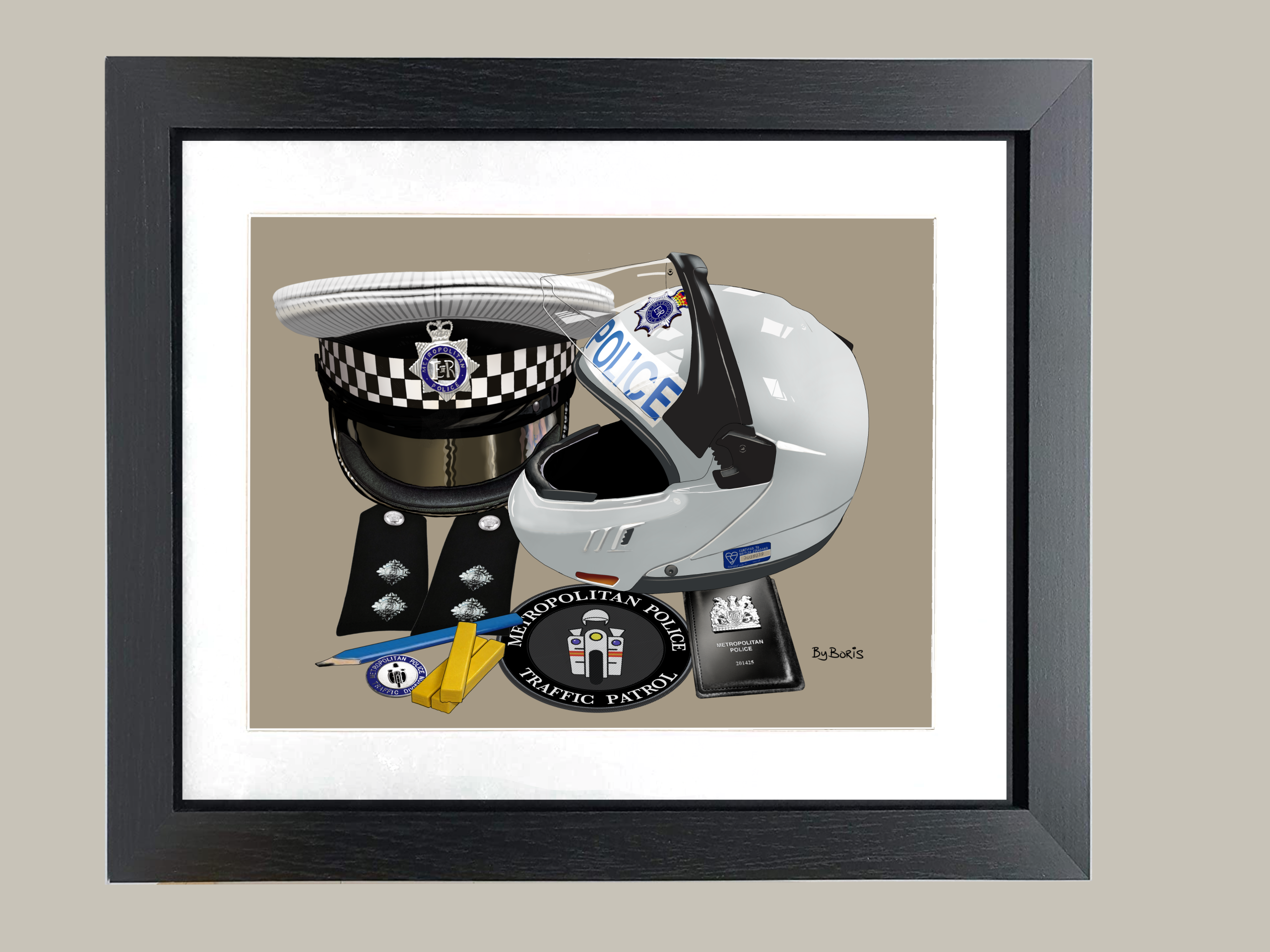 The artwork is printed on high quality matt lustre FujiFilm archival photo paper and mounted inside a white or black mount, finished in a black frame.
