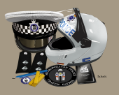 This is a montage of a Traffic Officer featuring A White Met Flat Cap and a Rising Chin Helmet.