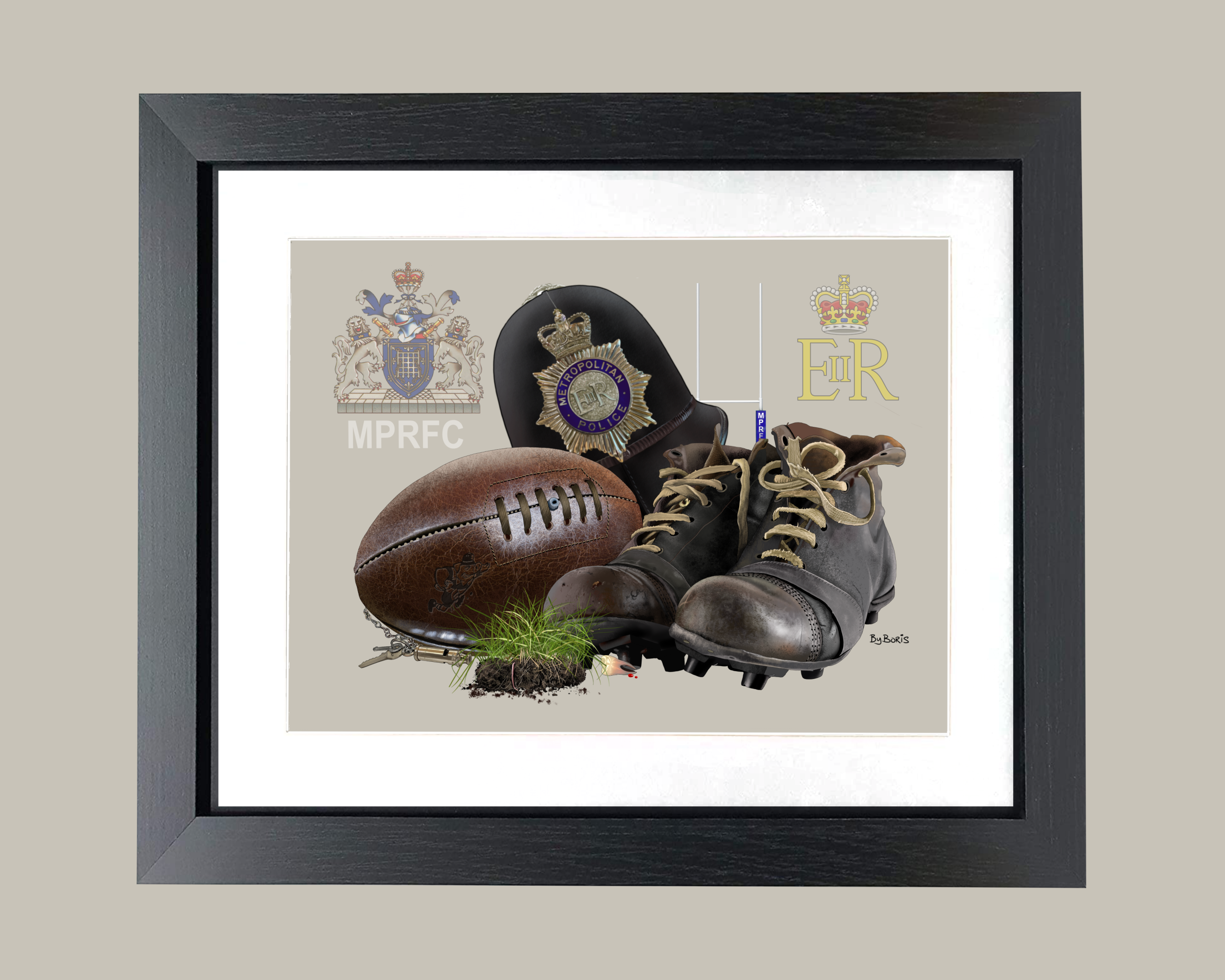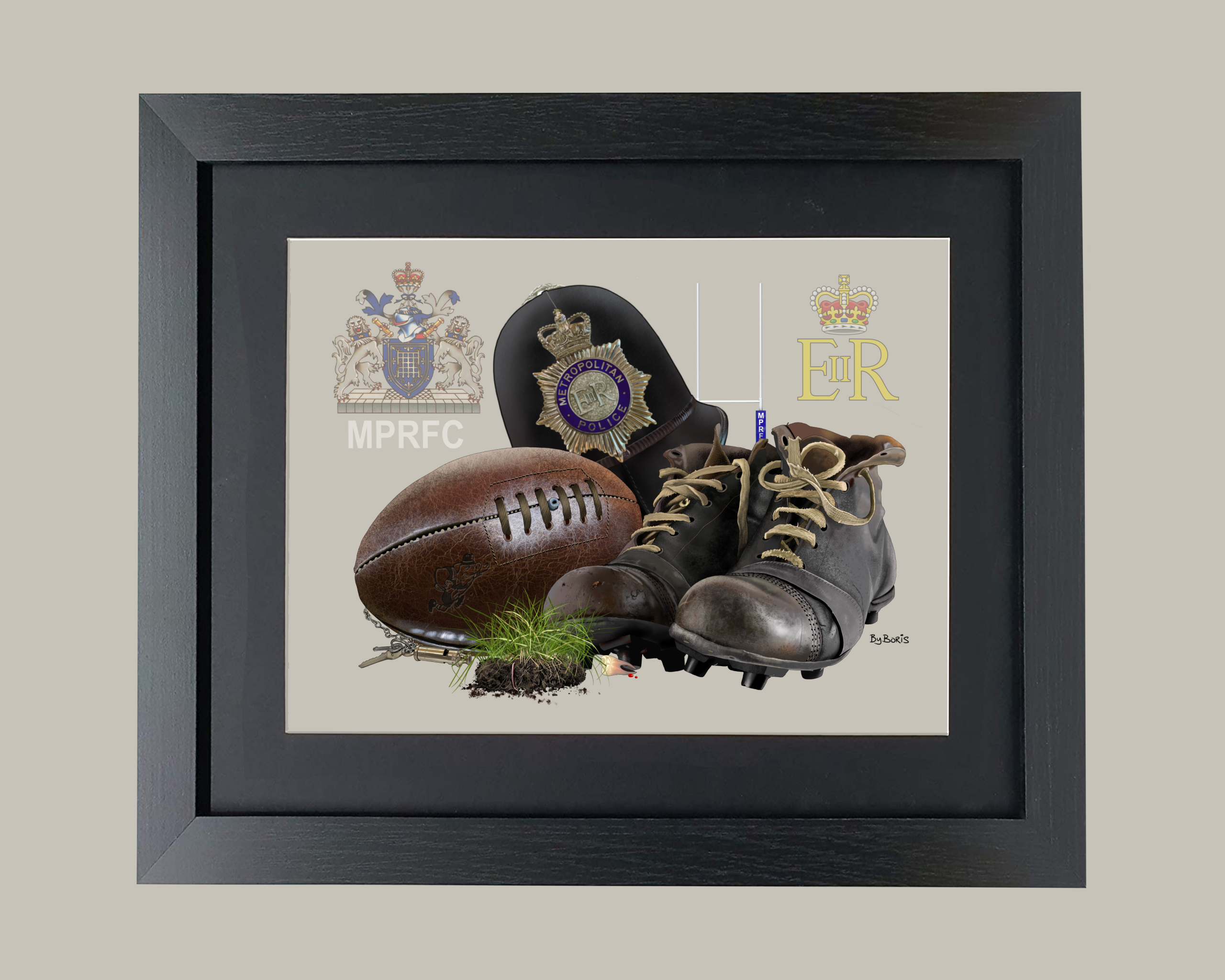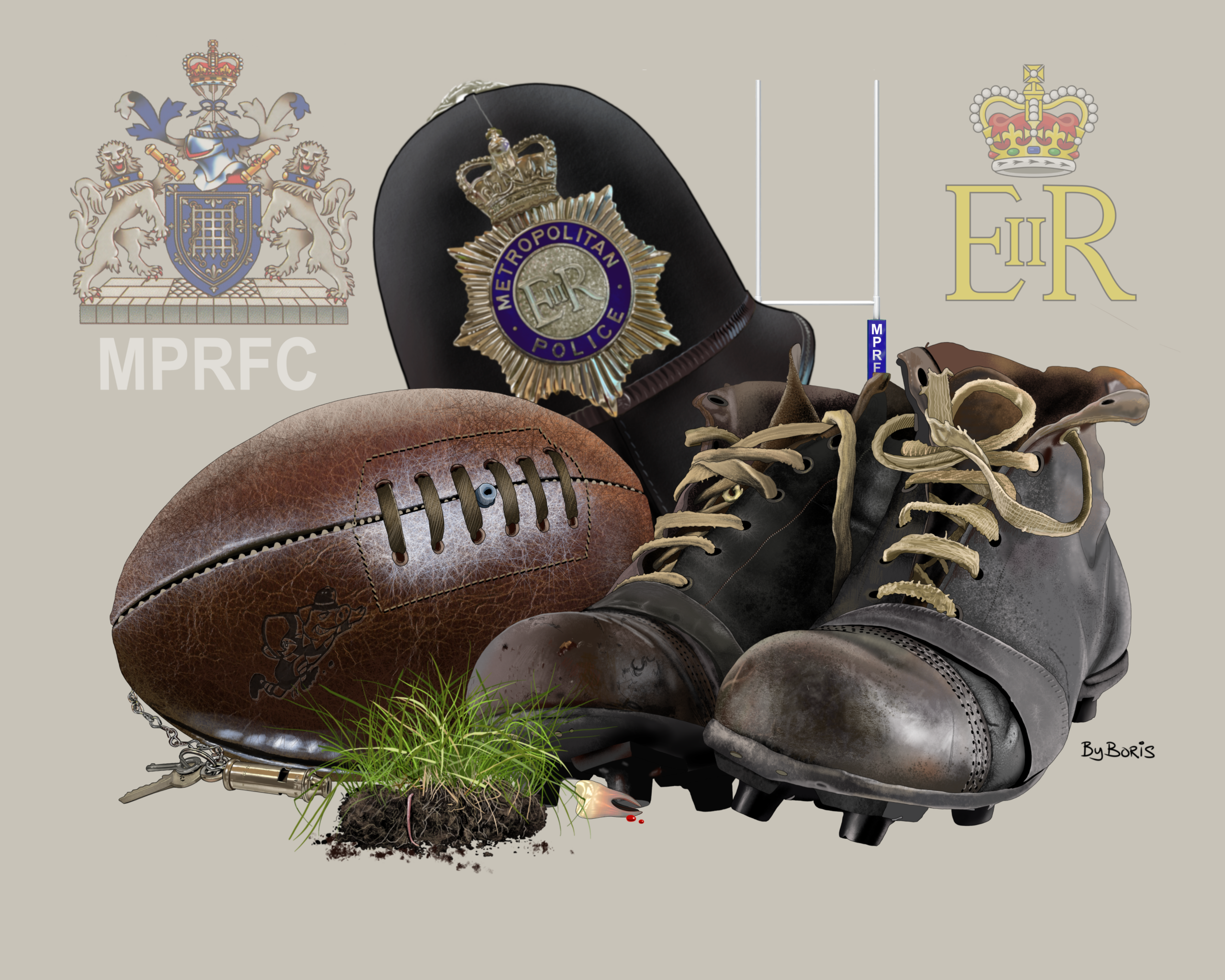 This is my digital painted sketch of a MPRFC (Met Police Rugby Football Club) montage with a blue ring custodian helmet.