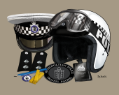 This is a montage of a Traffic Inspector Montage featuring A White Met Flat Cap and a Inspectors Open Face Helmet with a black peak.