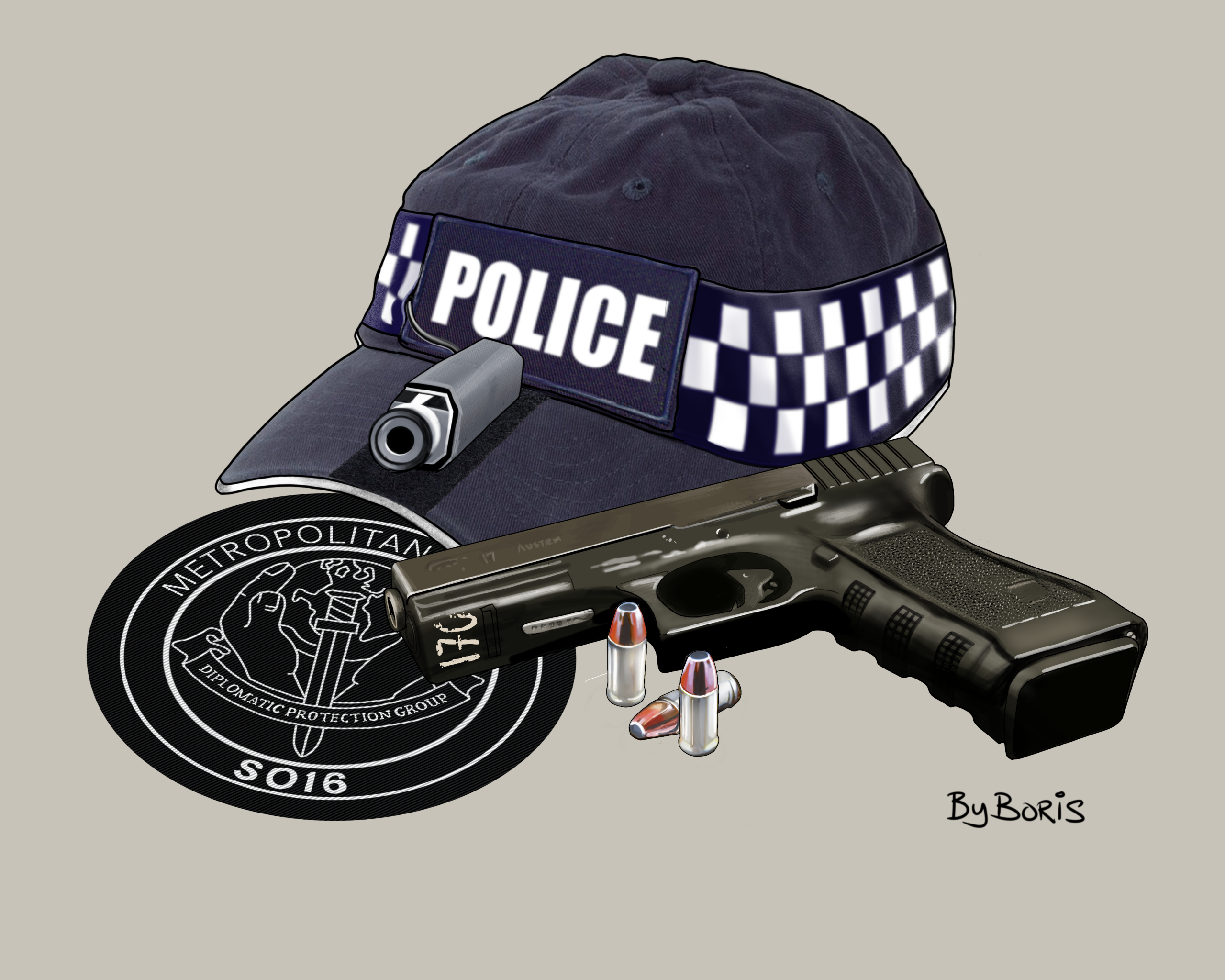 SO16 Patch, Met Soft Blue Cap, Glock and Ammo Mounted Print 12ins x 10ins.