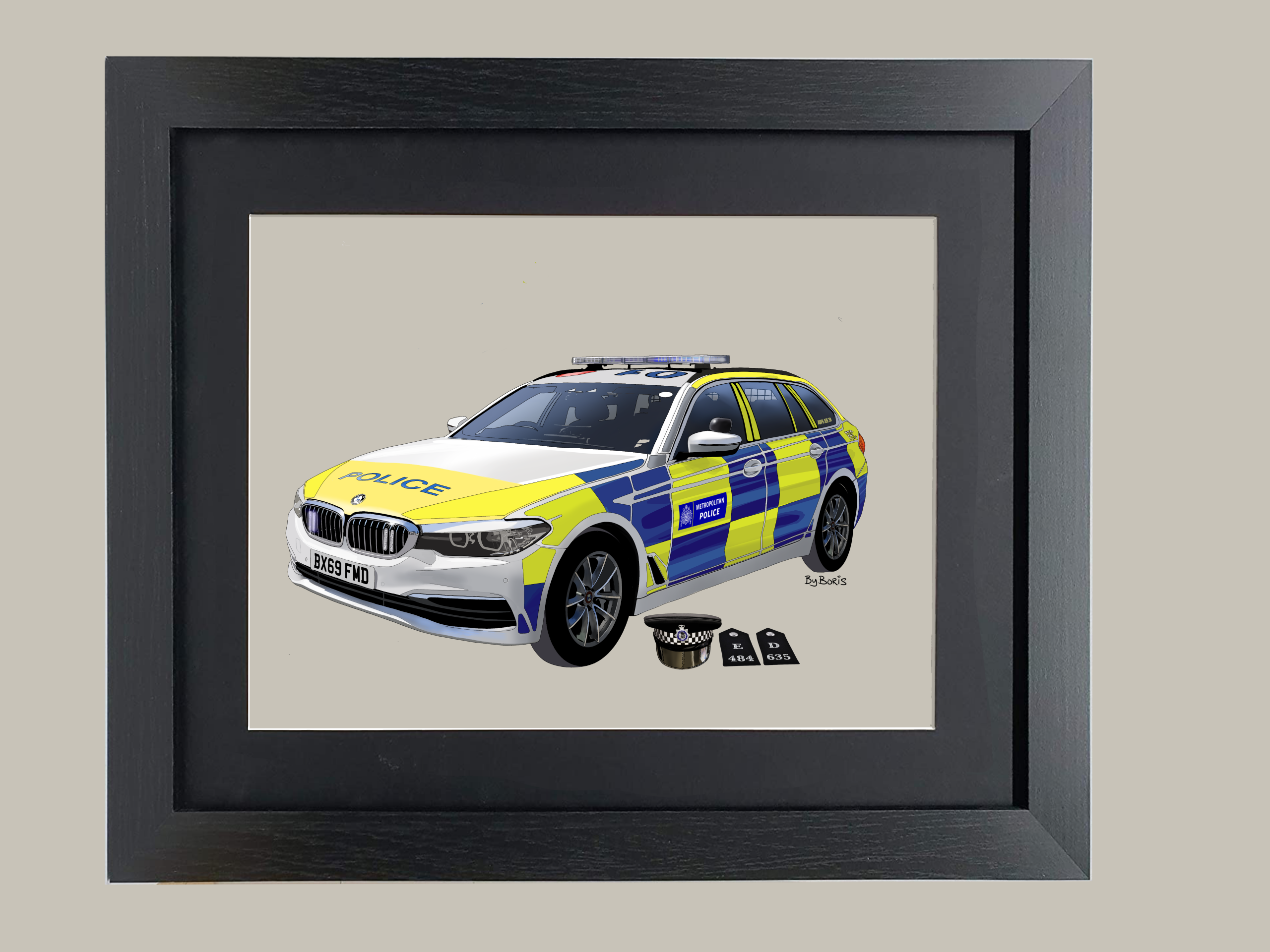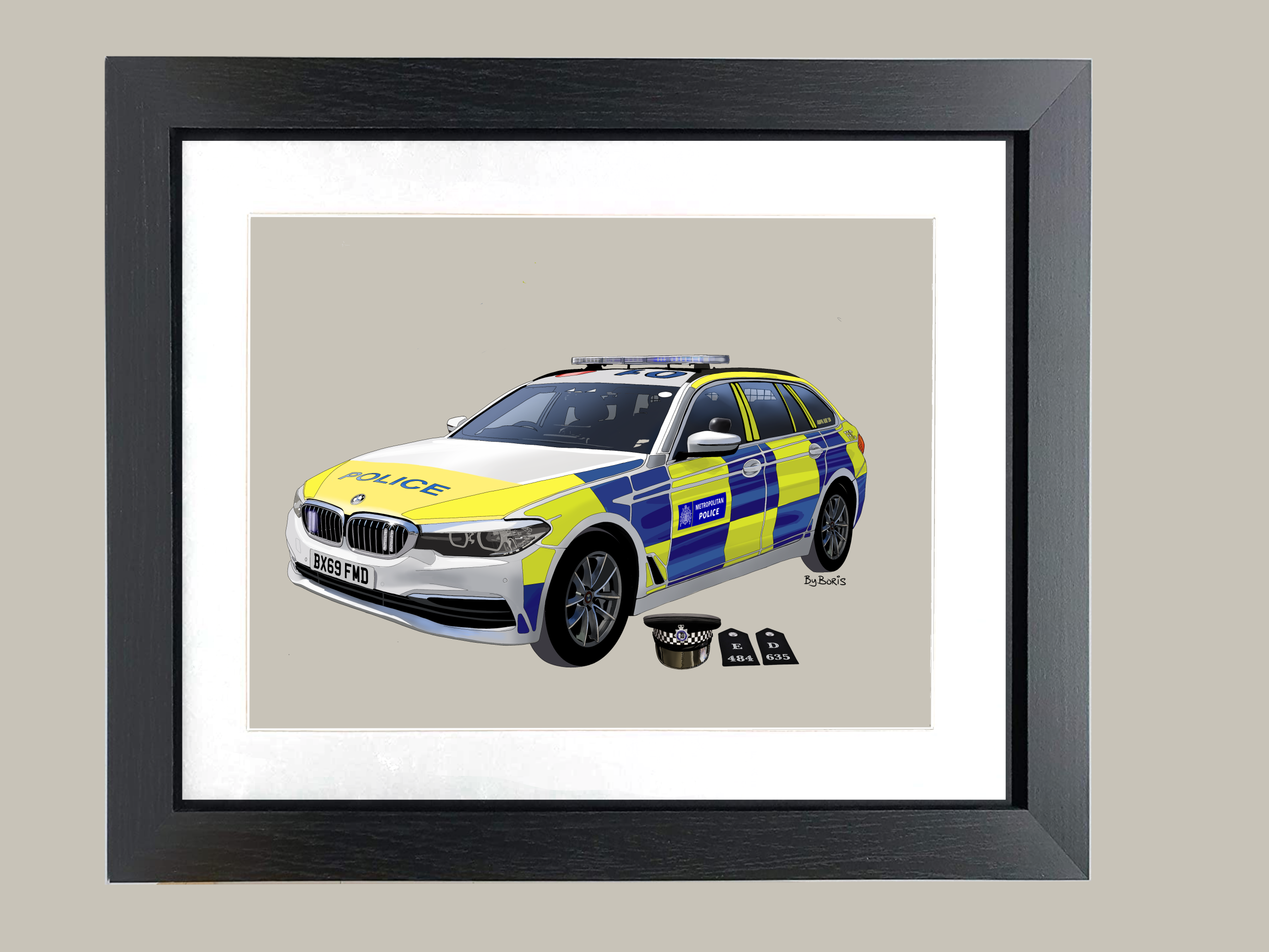 Personalised BMW Series 5 Traffic Car Framed Print 12ins x 10ins.