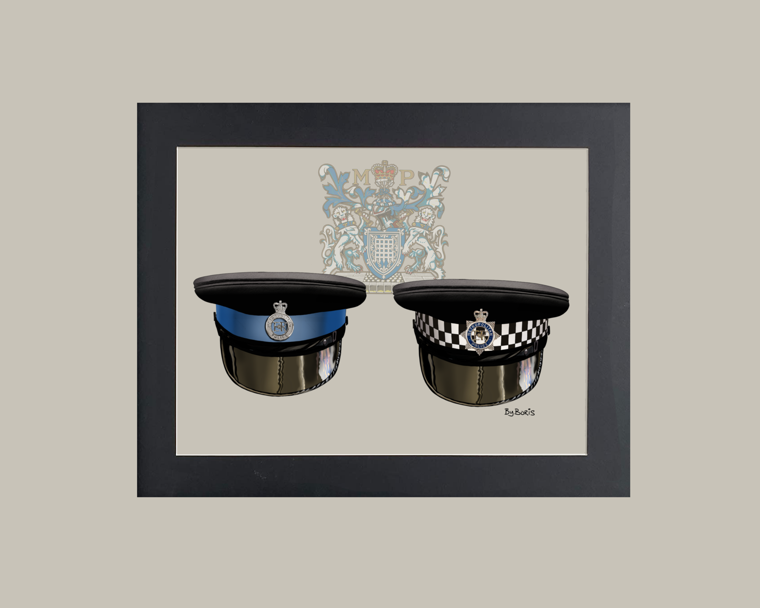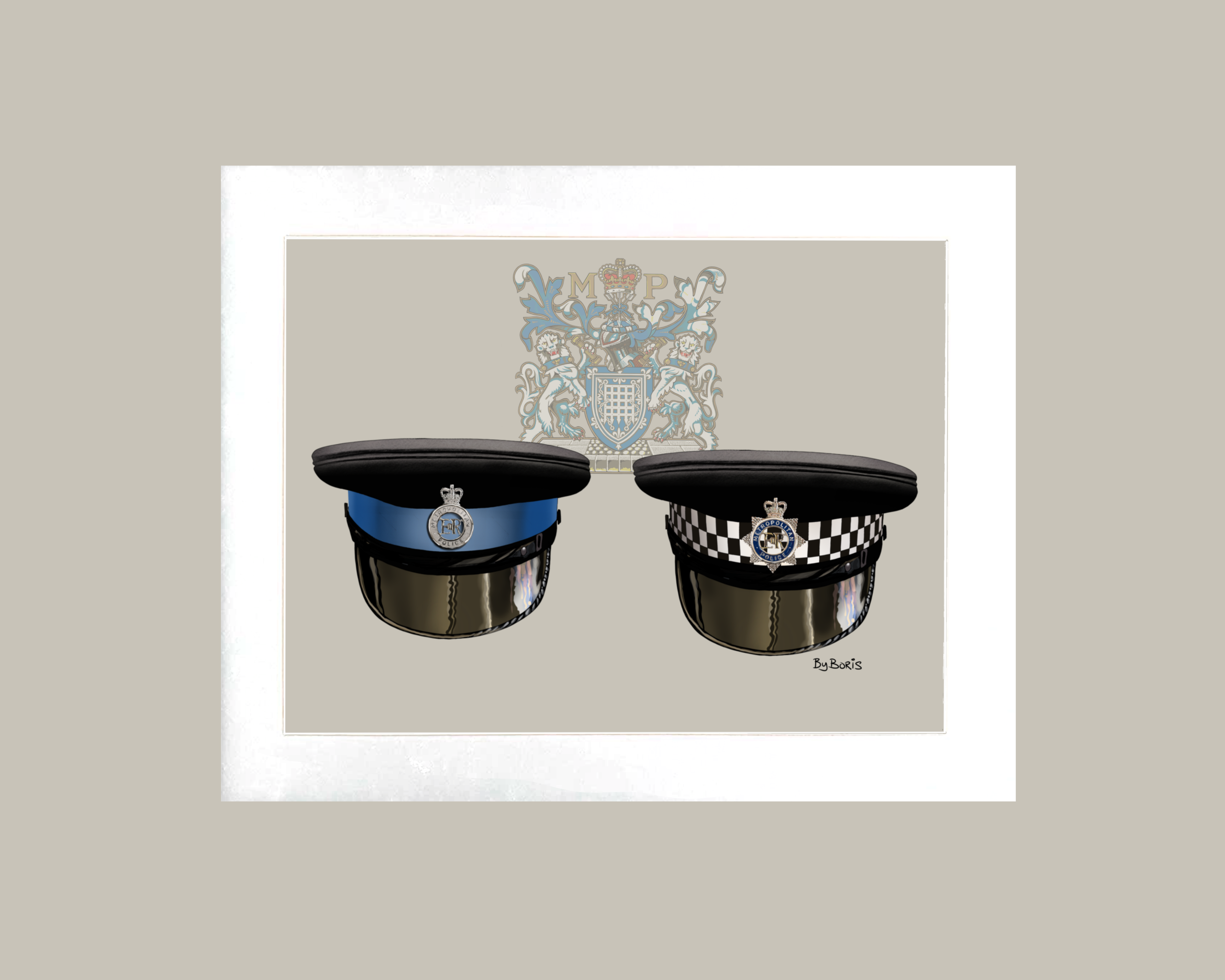 Met Cadet Flat Cap and Met Flat Cap Mounted Print 20ins x 16ins.