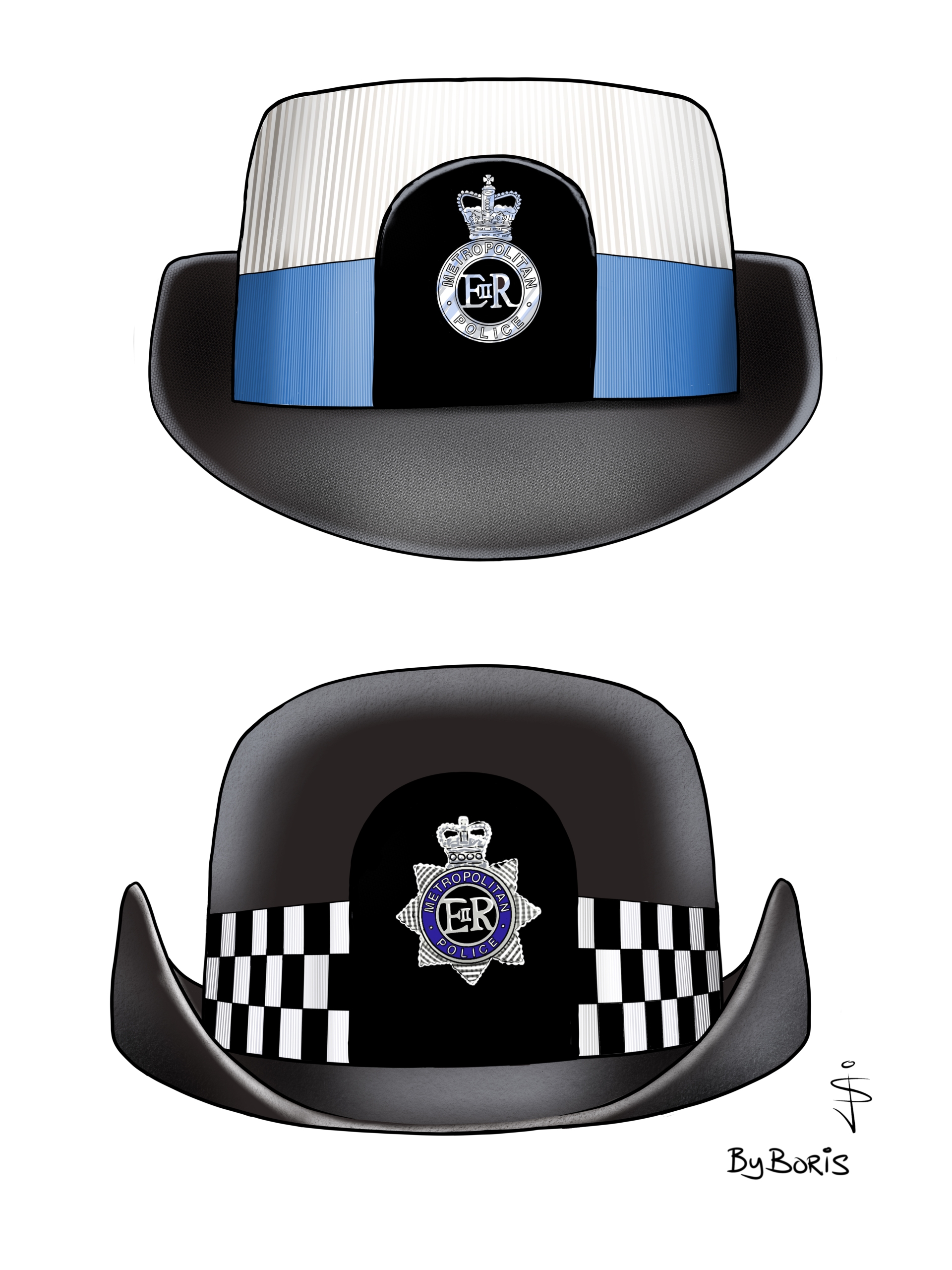 Cadet White Pillbox and Met Black Bowler Mounted Print 20ins x 16ins..