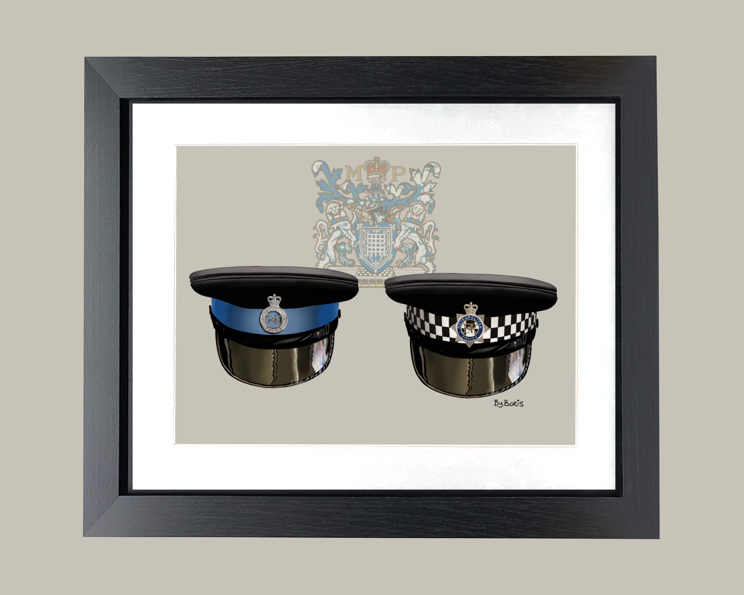 Met Cadet Flat Cap and Met Flat Cap Mounted Print 20ins x 16ins.