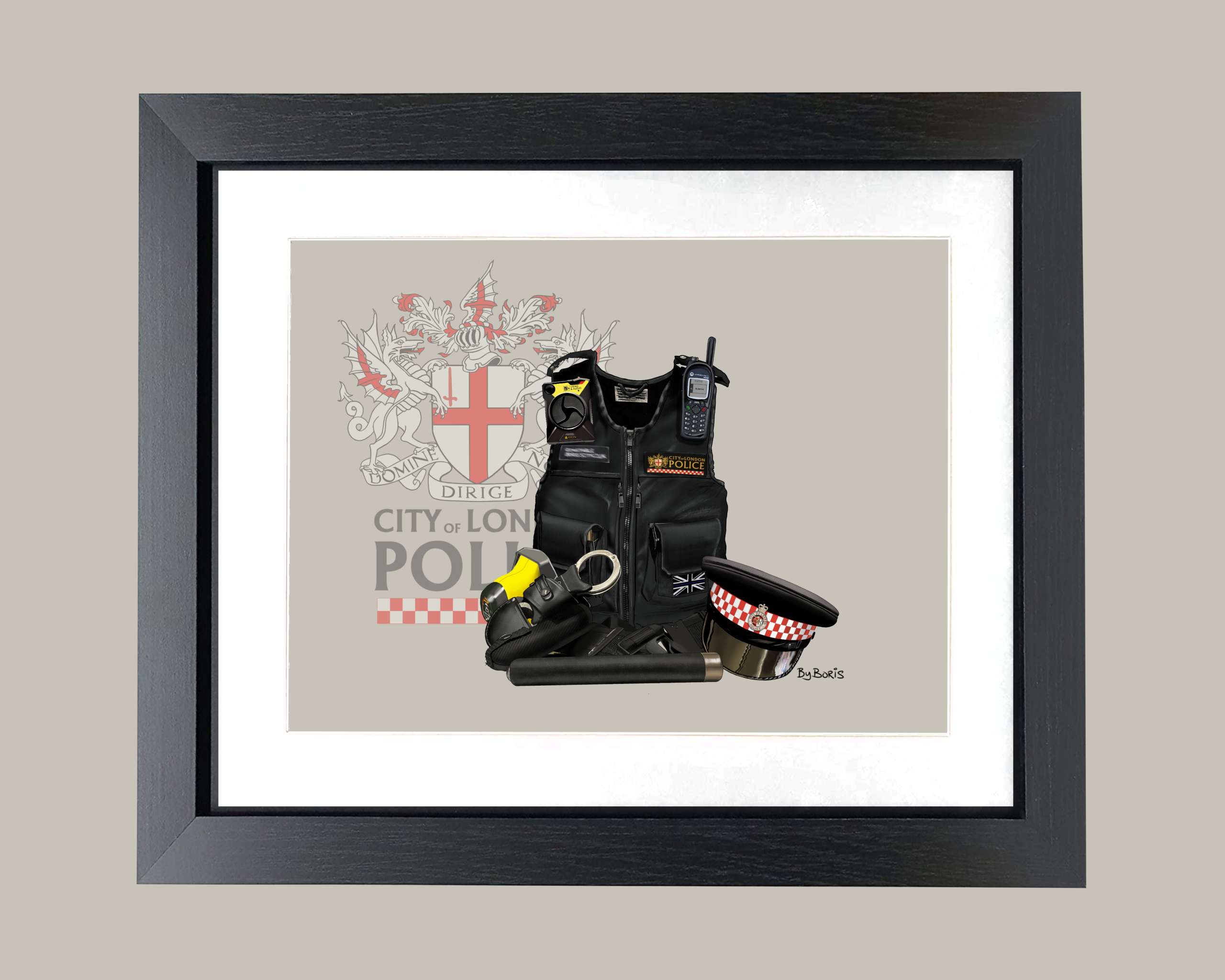Personalised City of London Vest, Belt and Flat Cap Framed Print 12ins x 10ins.