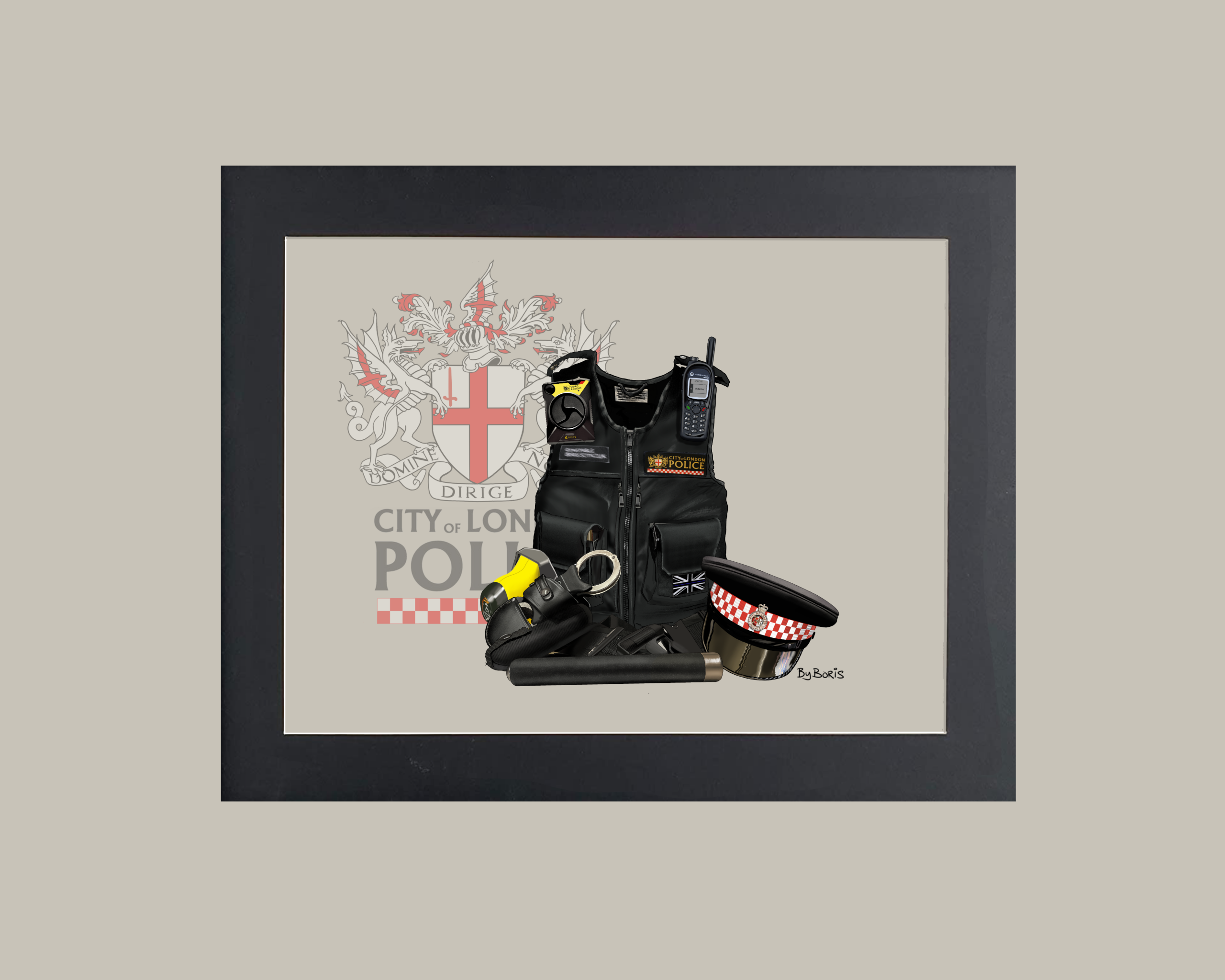 Personalised City of London Vest, Belt and Flat Cap Mounted Print 20ins x 16ins.
