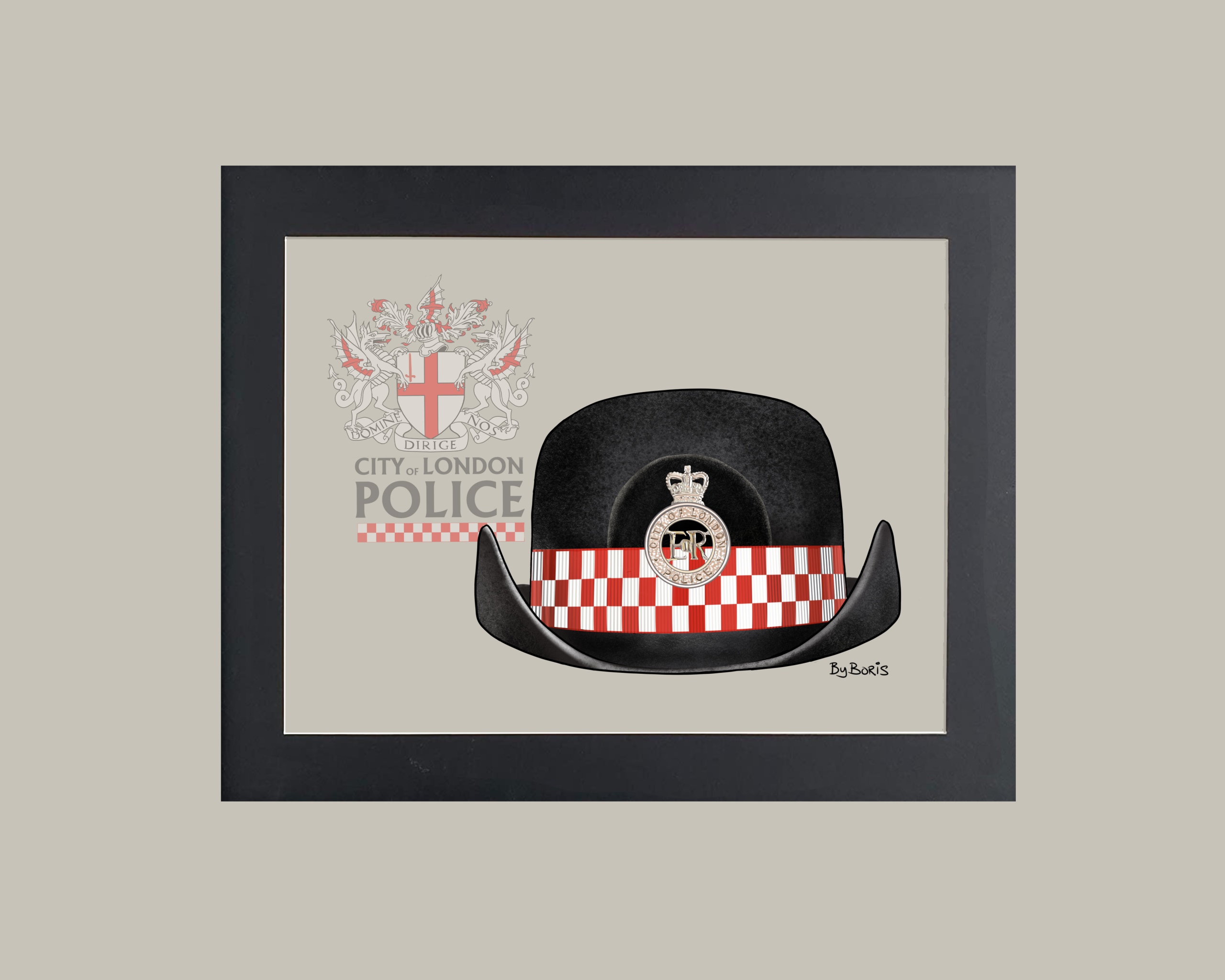 City of London Black Bowler Mounted Print 20ins x 16ins.