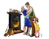 The original artwork was entirely sketched on an iPad Pro 12.9 using the Procreate App, and is one of a series I have created of Pinnie Hinnies, which tries and recaptures my memories of growing up as a child in the small mining village of Pegswood in Northumberland. The term “Hinnies” is the local name for woman in the North East, and were know to wear a variety of pinnies or aprons, hence the name of the series Pinnie Hinnies.