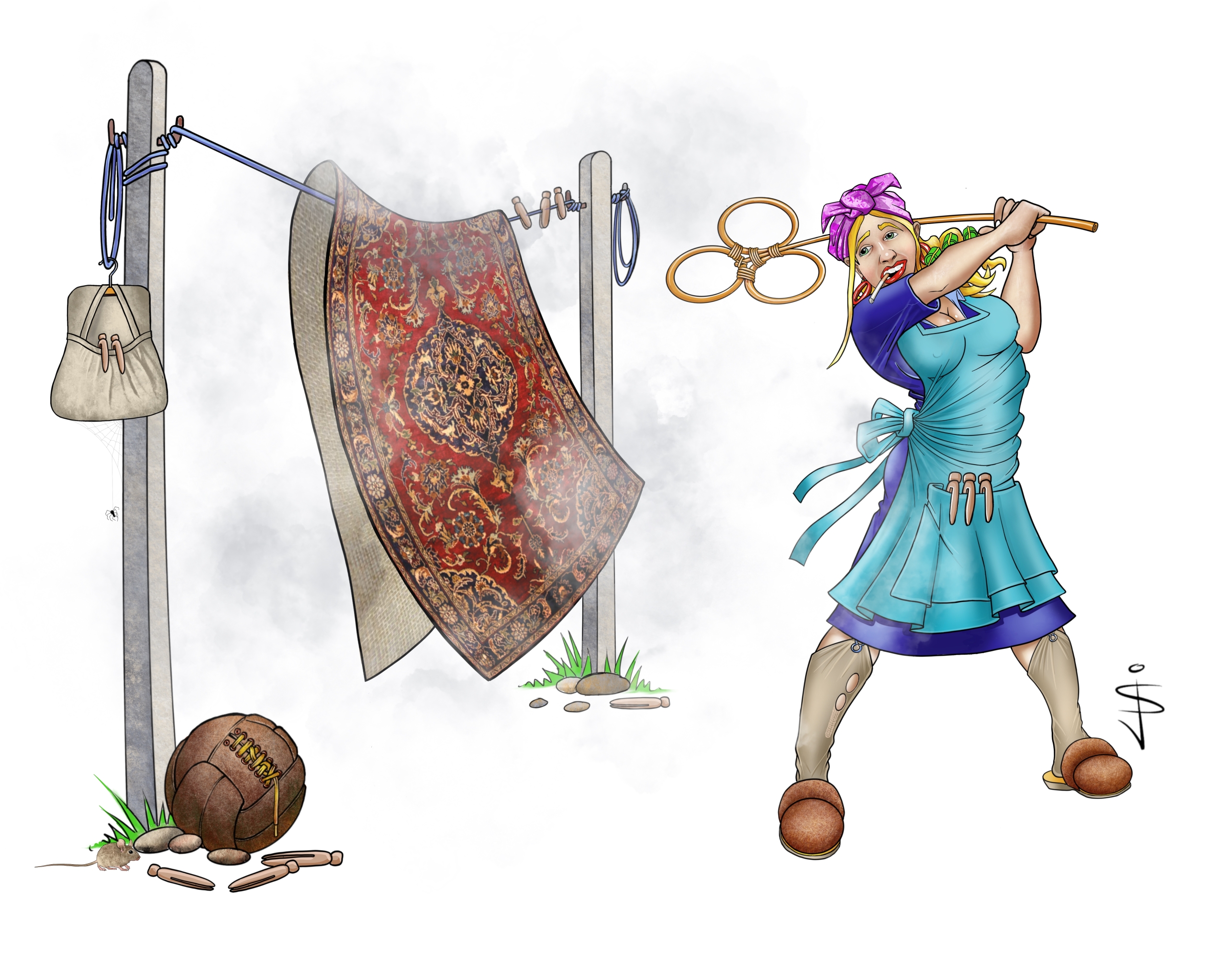 Pinnie Hinnies Carpet Beater Mounted Print 20ins x 16ins