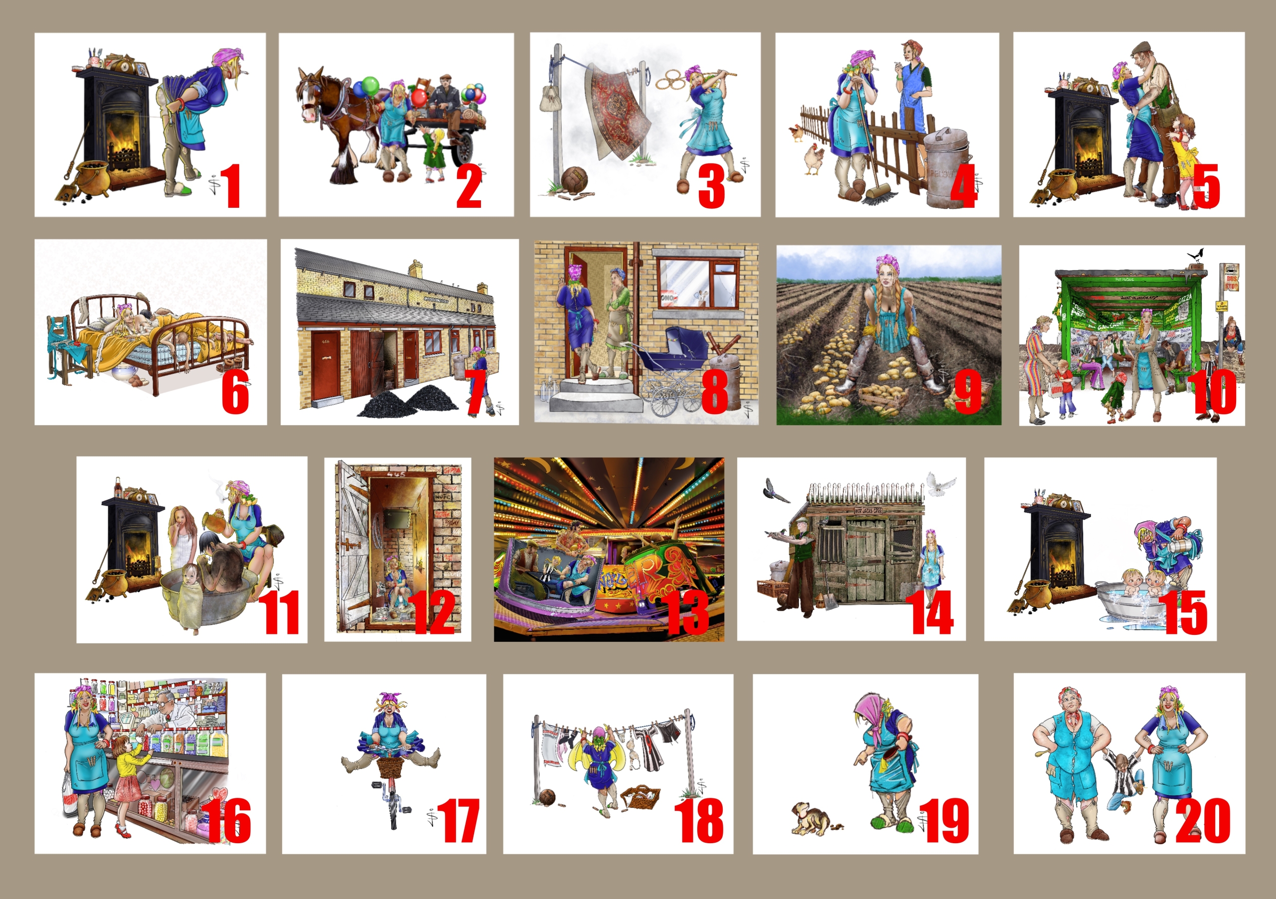 Please choose ANY combination of numbers to make up your set of 10 Pinnie Hinnies greeting cards.