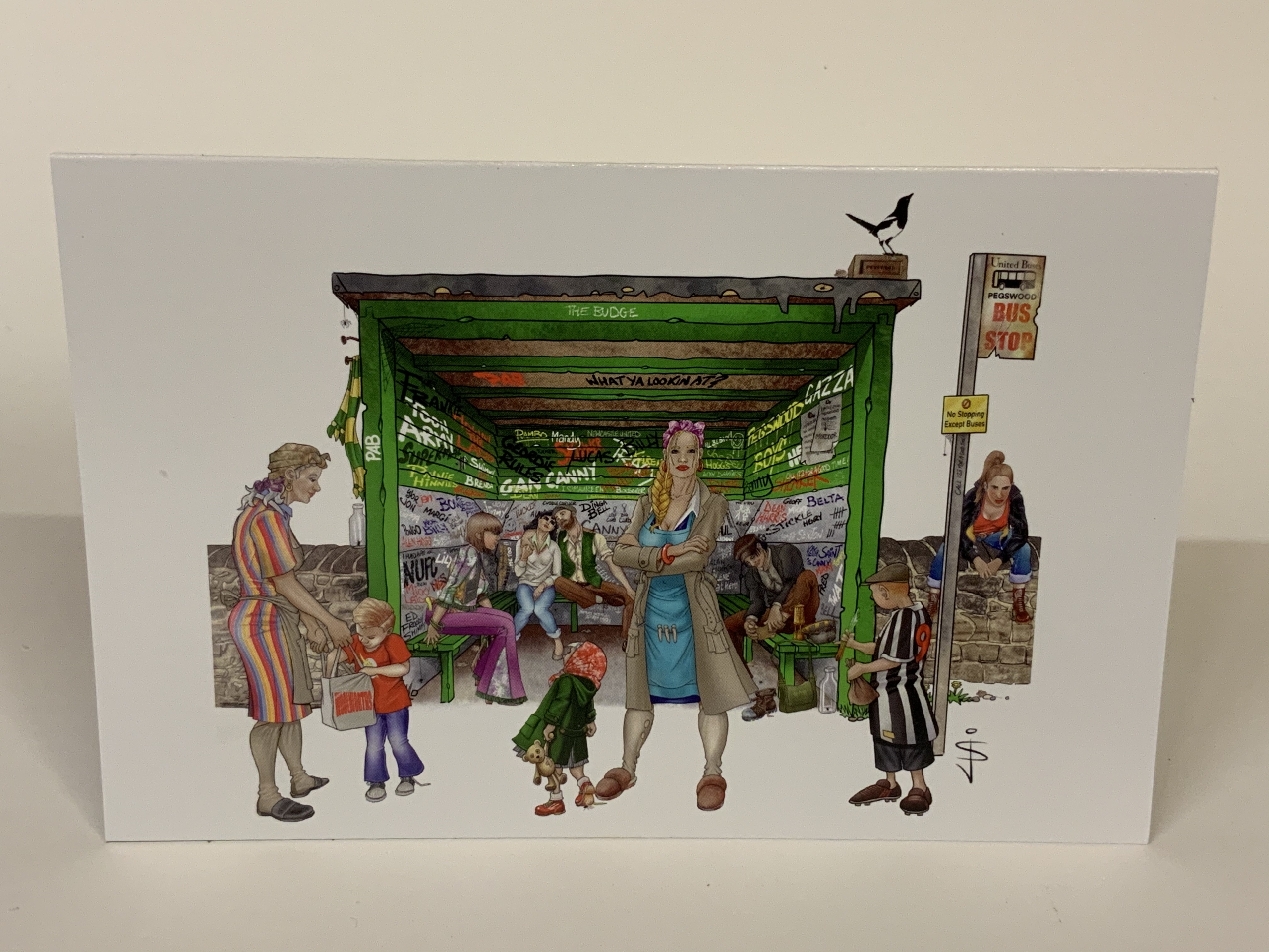 Pinnie Hinnies Greeting Card - Green Bus Shelter