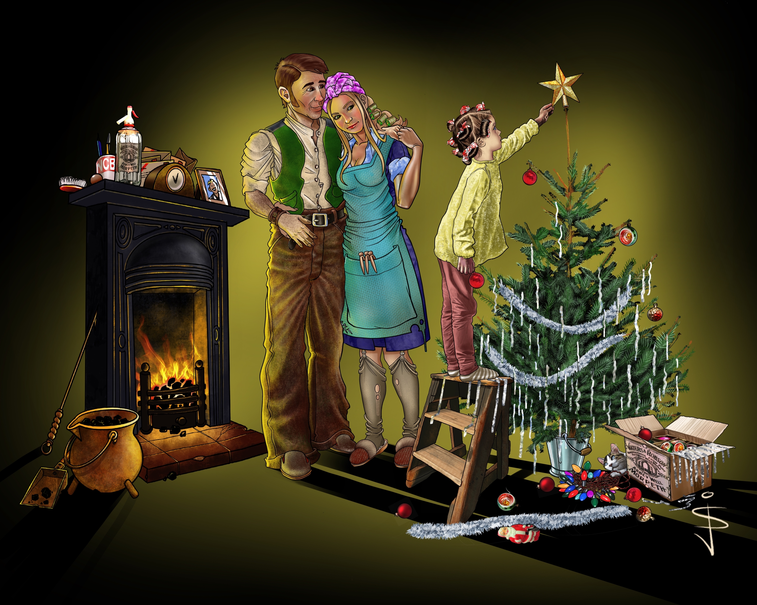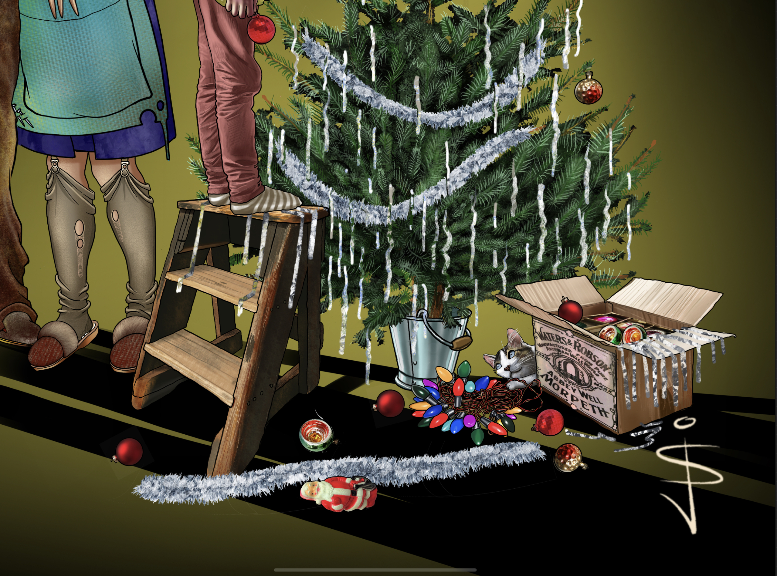 Pinkie Hinnies Christmas Smokey Mounted Print 20ins x 16ins