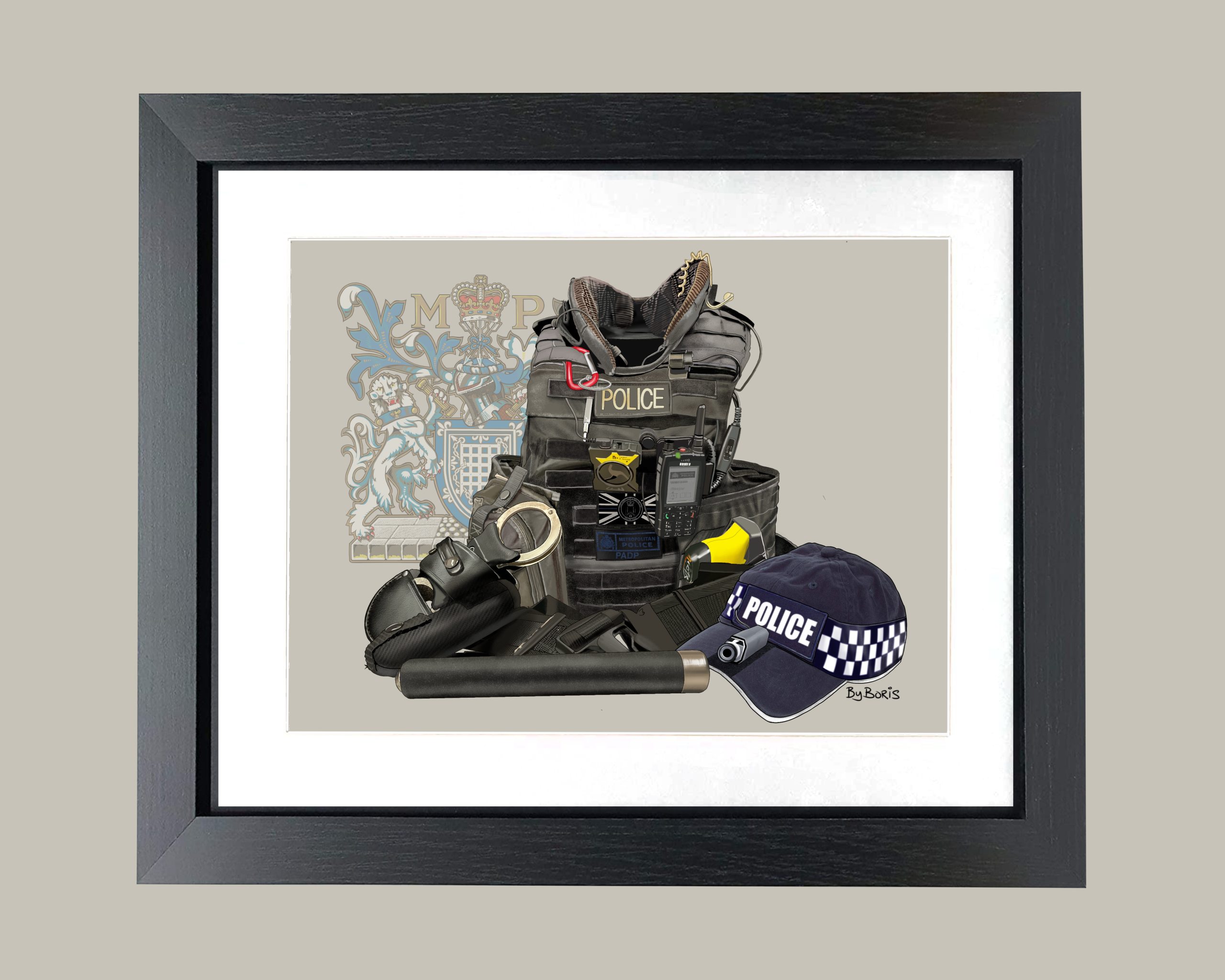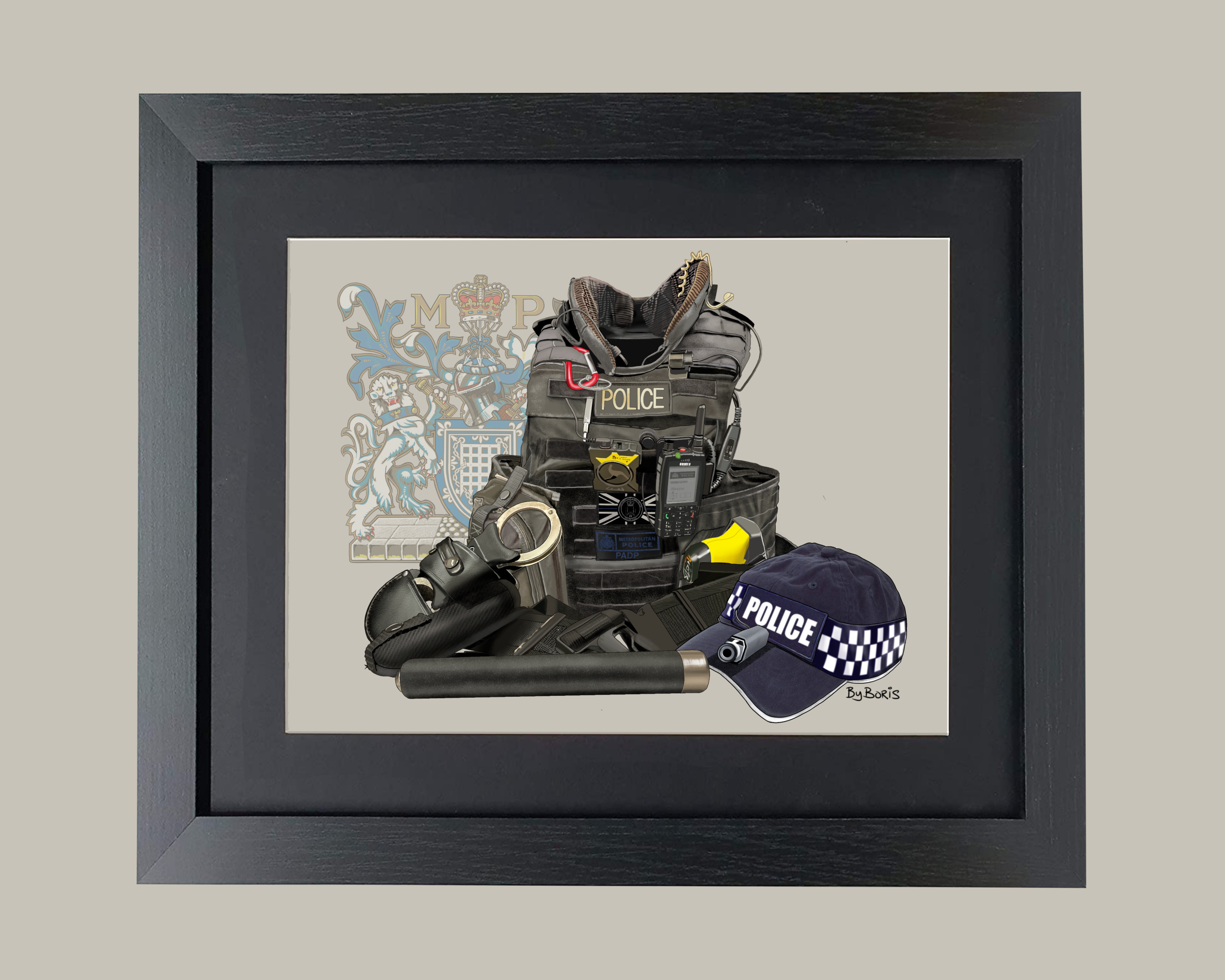 Met PADP Tactical Vest and Belt Framed Print 12ins x 10ins.