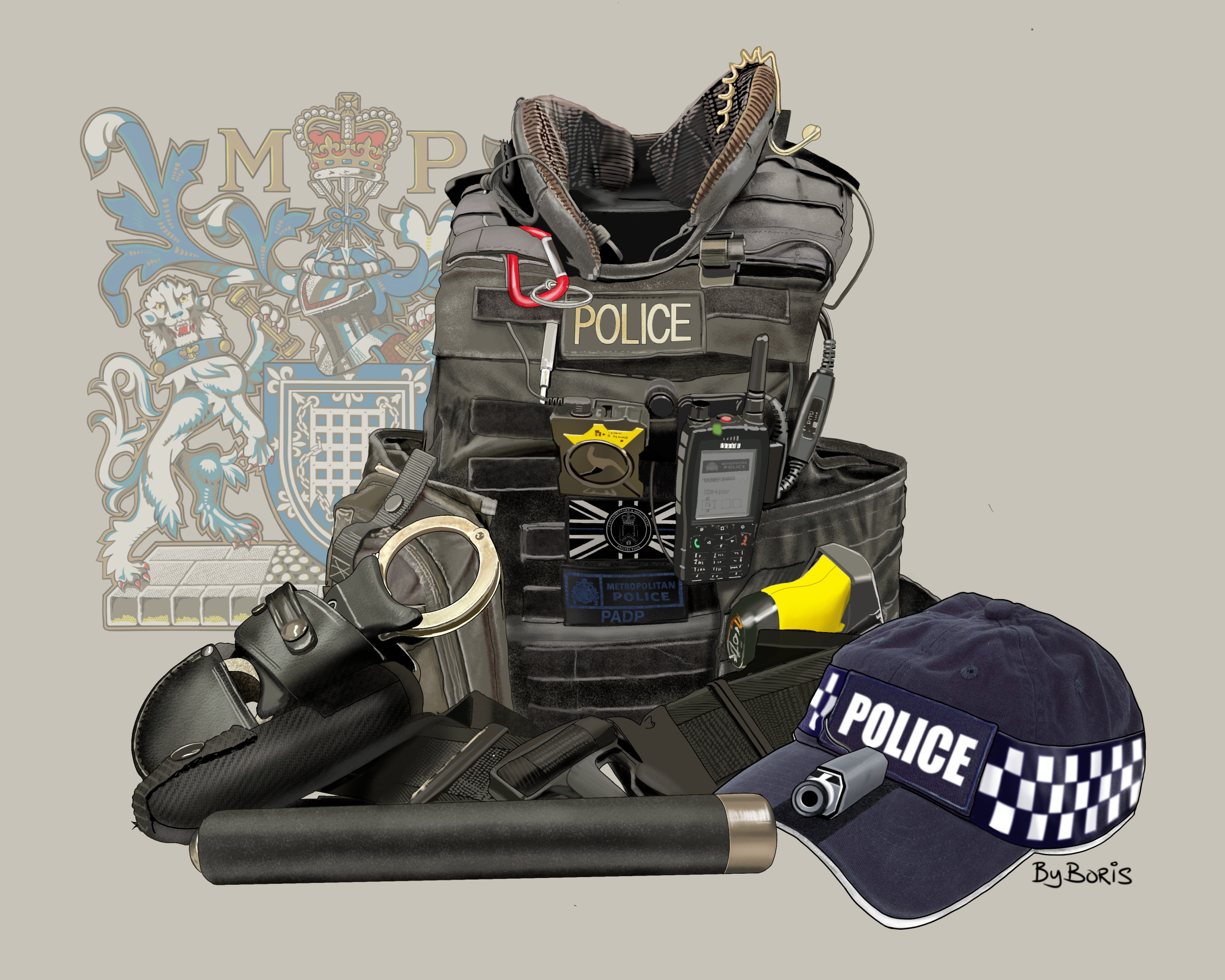 This is an illustration of the PADP Tatical Vest Officers wear in London, which I digitally painted in Procreate, this artwork took around 10-12 hours to complete over 3 days.