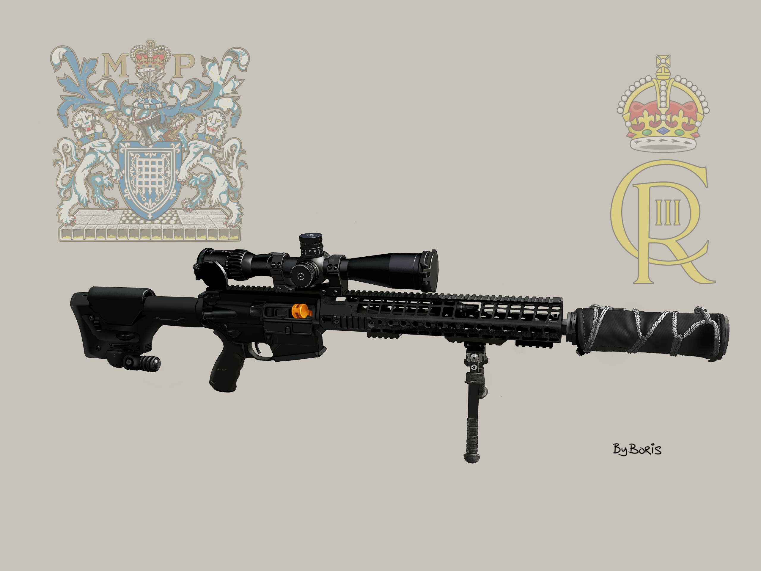 This was inspired by my visit to the Met Police EXPO 23 and I had the chance to take a few photos of the current Police firearms. This peaked my interest enough to digitally paint it.