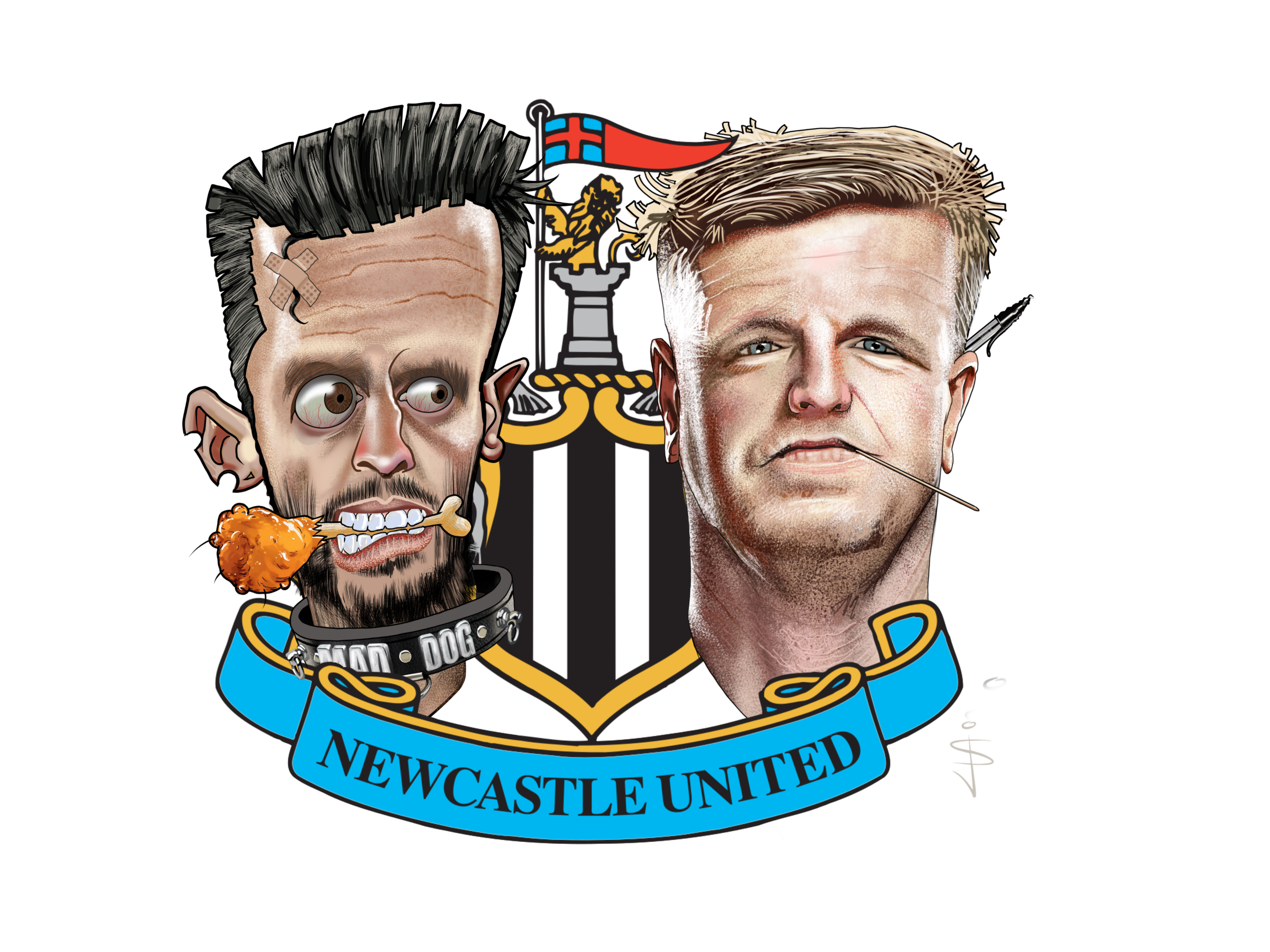 Dynamic Duo Newcastle United Manager Jason “Mad Dog” Tindall and Eddie Howe Black Tee Shirt