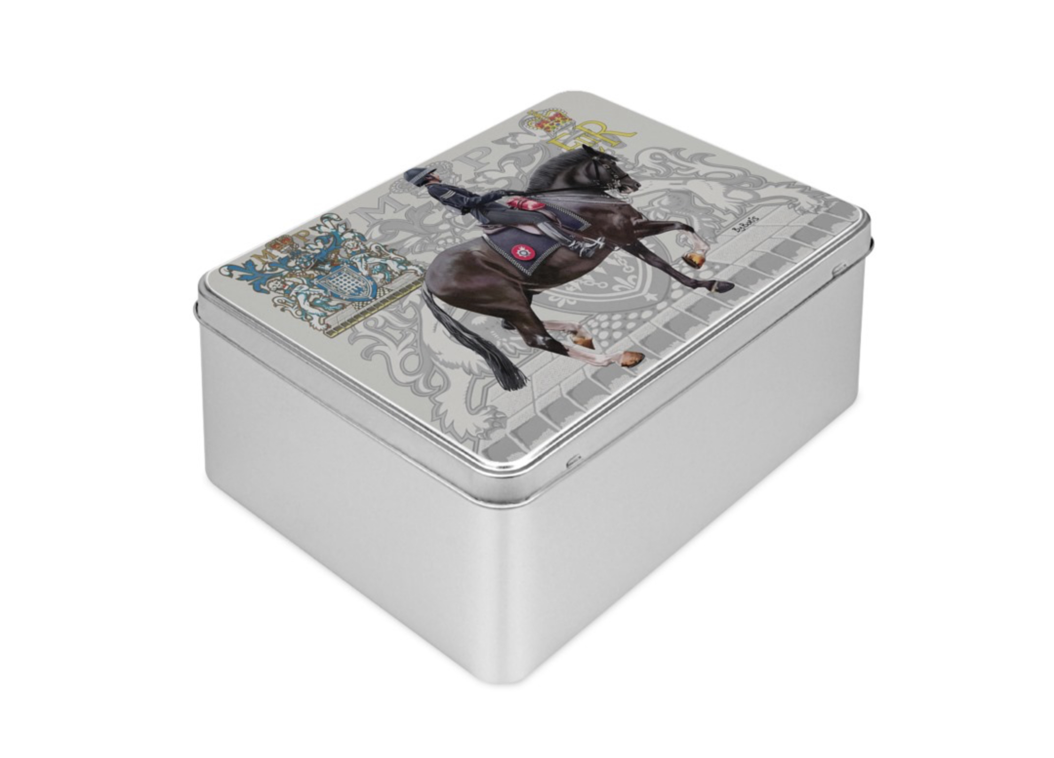 The 1000 piece puzzle comes in a printed illustrated metal tin.
