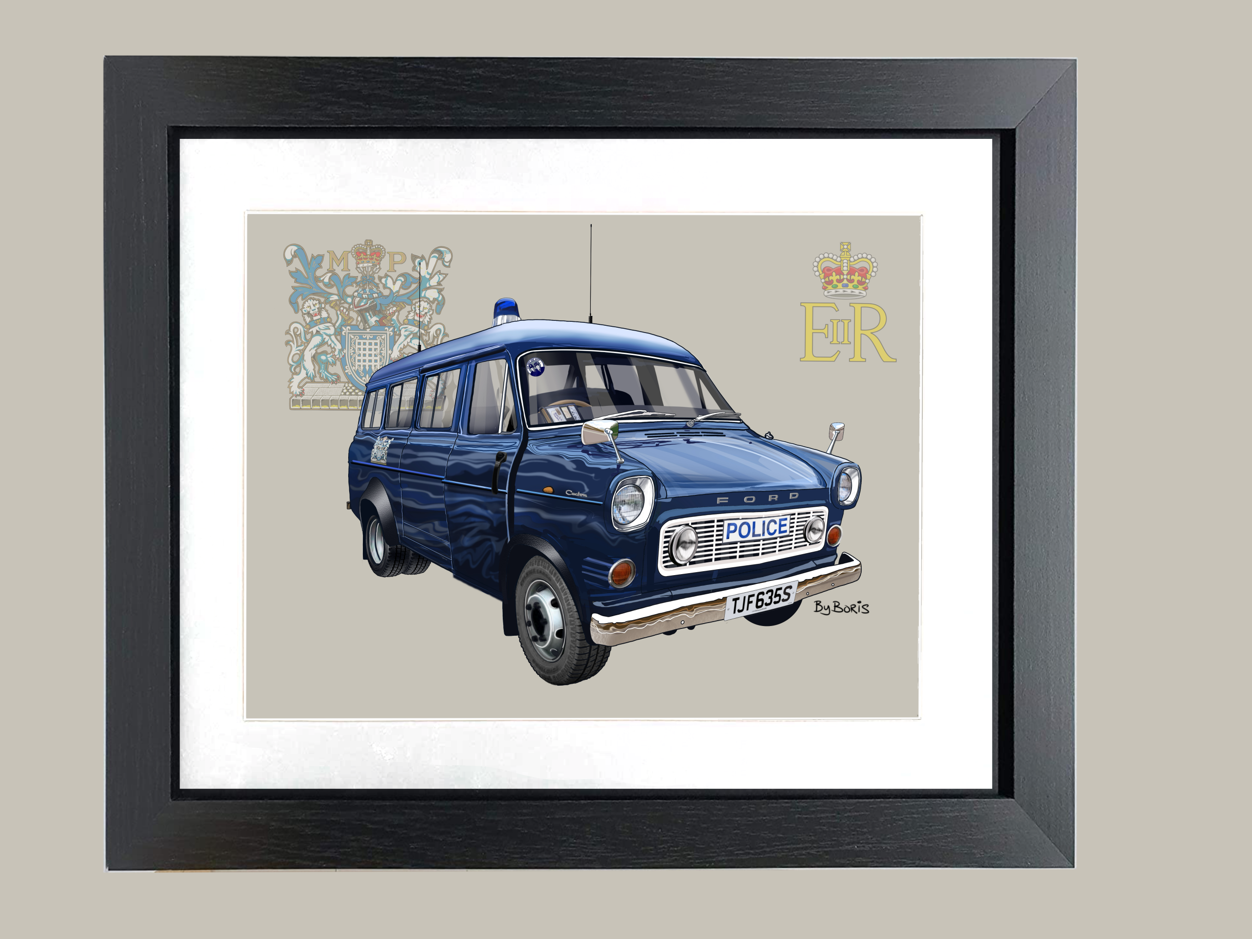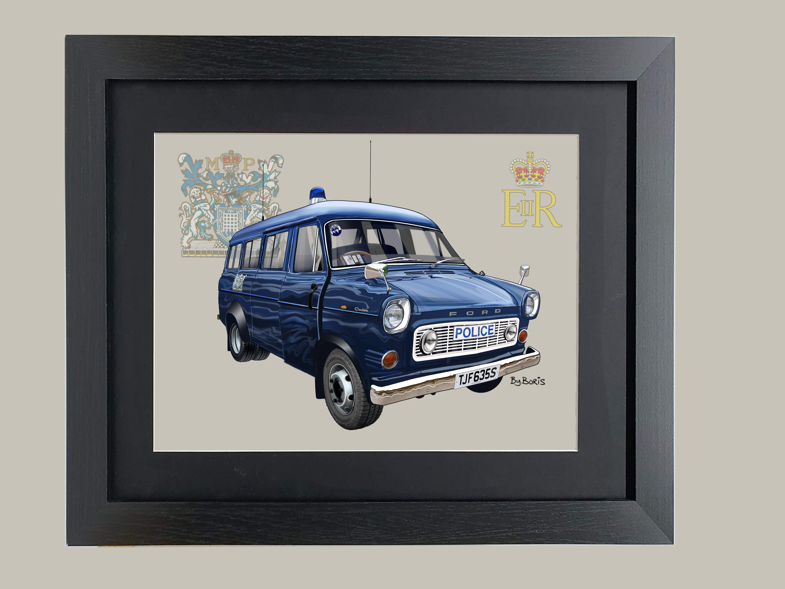 Met SPG 1970’s Ford Transit LWB Framed Print 12ins x 10ins.
