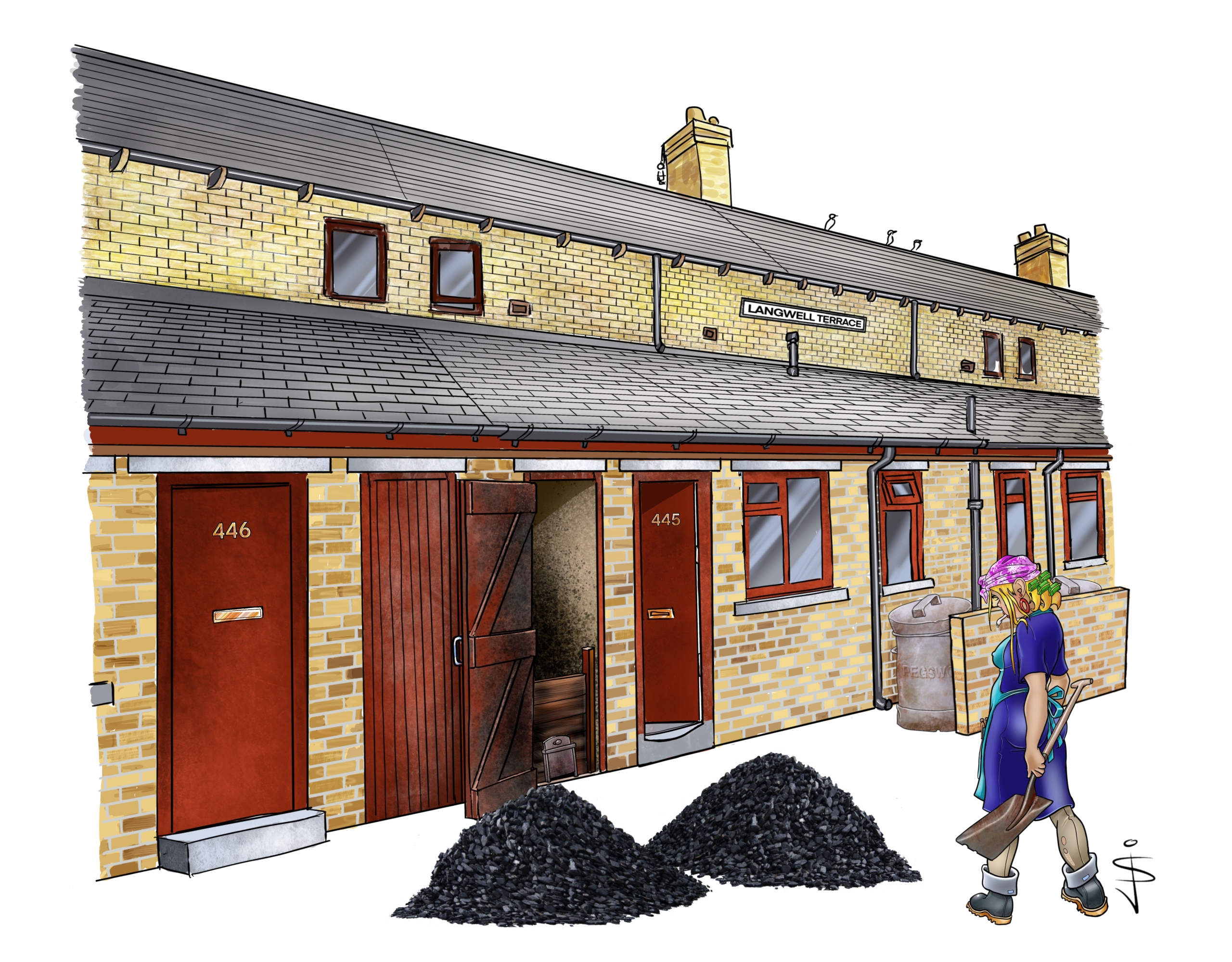The original artwork was entirely sketched on an iPad Pro 12.9 using the Procreate App, and is one of a series I have created of Pinnie Hinnies, which tries and recaptures my memories of growing up as a child in the small mining village of Pegswood in Northumberland. The term “Hinnies” is the local name for woman in the North East, and were know to wear a variety of pinnies or aprons, hence the name of the series Pinnie Hinnies.