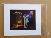 Pinnie Hinnies Warm Your Bum mounted print 12ins x 10ins The original artwork was entirely sketched on an iPad Pro 12.9 using the Procreate App, and is one of a series I have created of Pinnie Hinnies, which tries and recaptures my memories of growing up as a child in the small mining v...