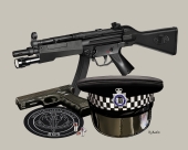 HK MP5 , Glock 17, Met Flat Cap and SO6 Patch Mounted Print 12ins x 10ins. The original artwork was entirely sketched on an iPad Pro 12.9 using the Procreate App. Each print comes with a certificate of authenticity with it's unique print run number and each print is signed ...