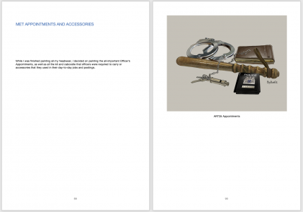 To be honest, I'm an artist and not a writer, it was like preparing a crown court legal brief for a court case! (like what we had to do on our own back in the day!) Somehow I wrote over 8500 words, with 21 chapters and 357 pages covering all my art, from police humour, Met and County Police headwear, from Met Vehicles and bikes to firearms to Police portraits and even has a chapter on those loveable black rodents that could be found hiding in service stations around the M25!